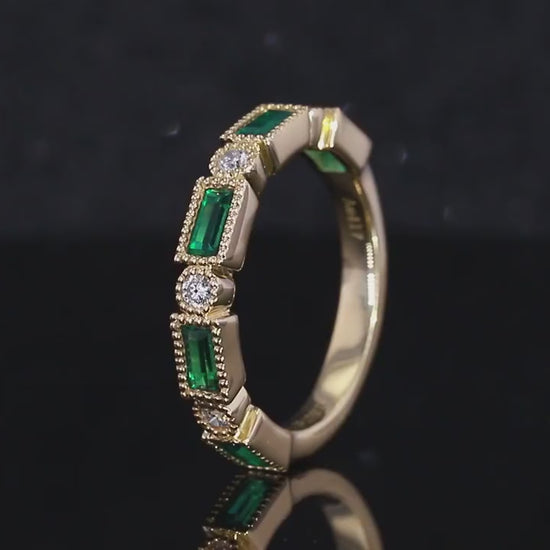 MomentWill 10k Gold Green Emerald Ring Half Eternity Jewelry Women Wedding Rings