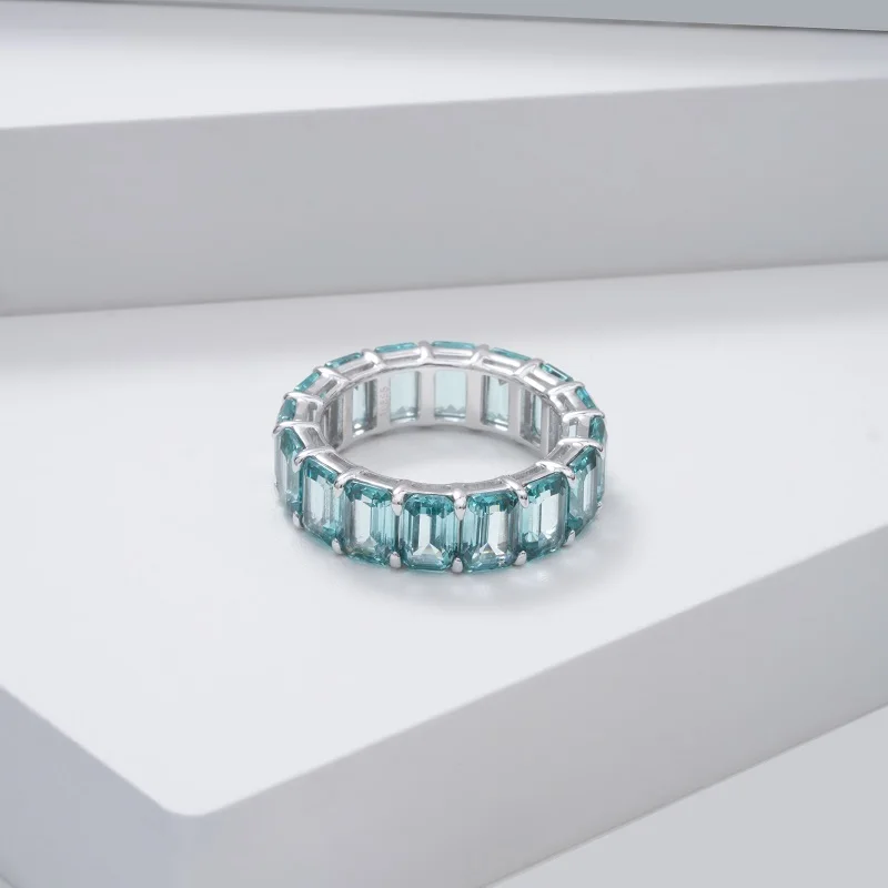This exquisite ring features a stunning emerald cut lab-created gemstone, elegantly set in your choice of yellow or white 14K gold. The pave setting, crafted using advanced micro insert inlay technology, ensures that the gemstones are securely held while radiating brilliant sparkle. Perfect for any special occasion, from engagements and weddings to anniversaries and gifts, this classic piece offers timeless sophistication. Whether as a wedding band or a statement ring, its unisex design makes it a versatile addition to any collection, embodying both luxury and enduring style.