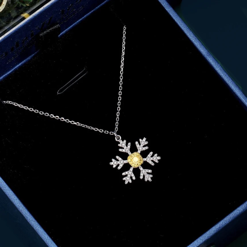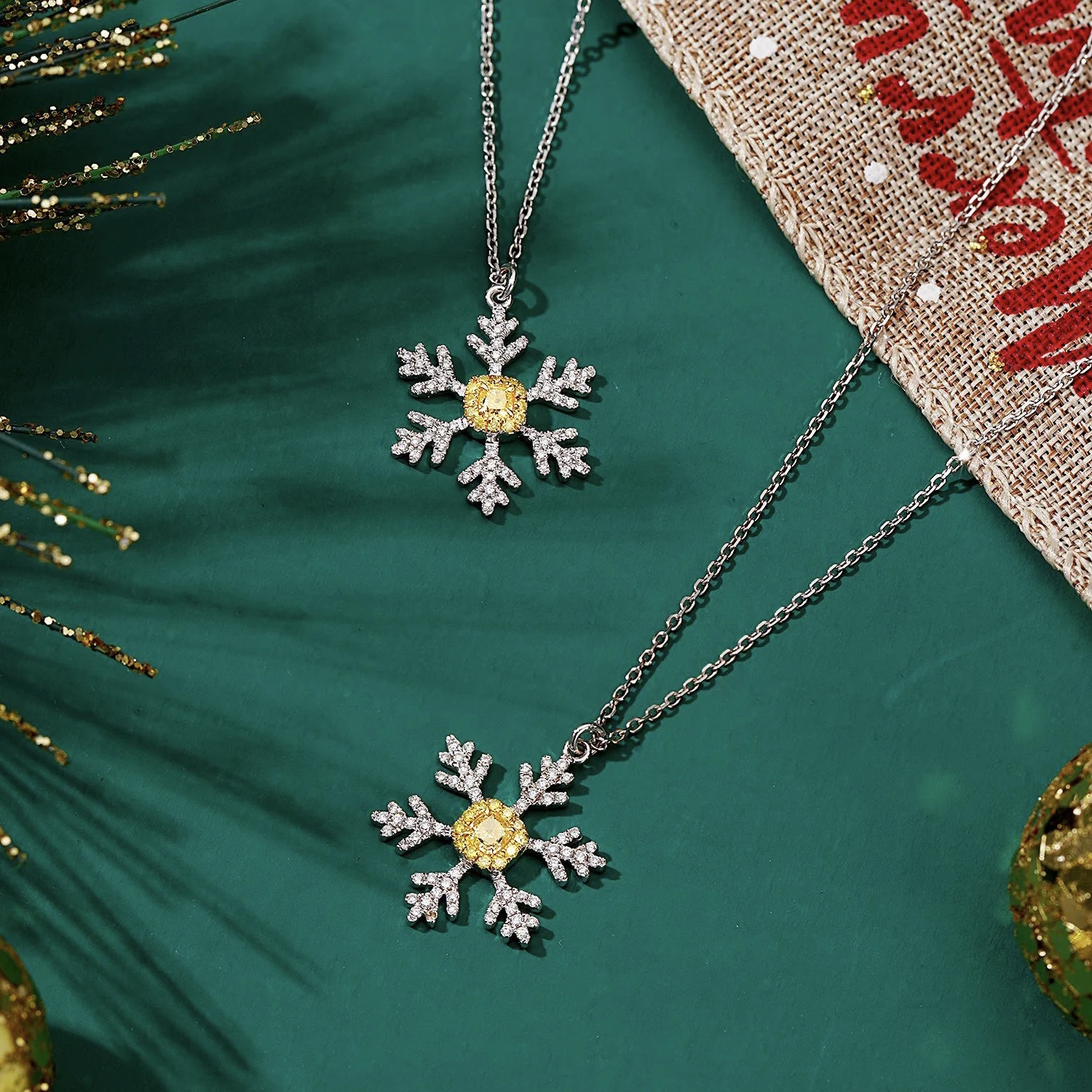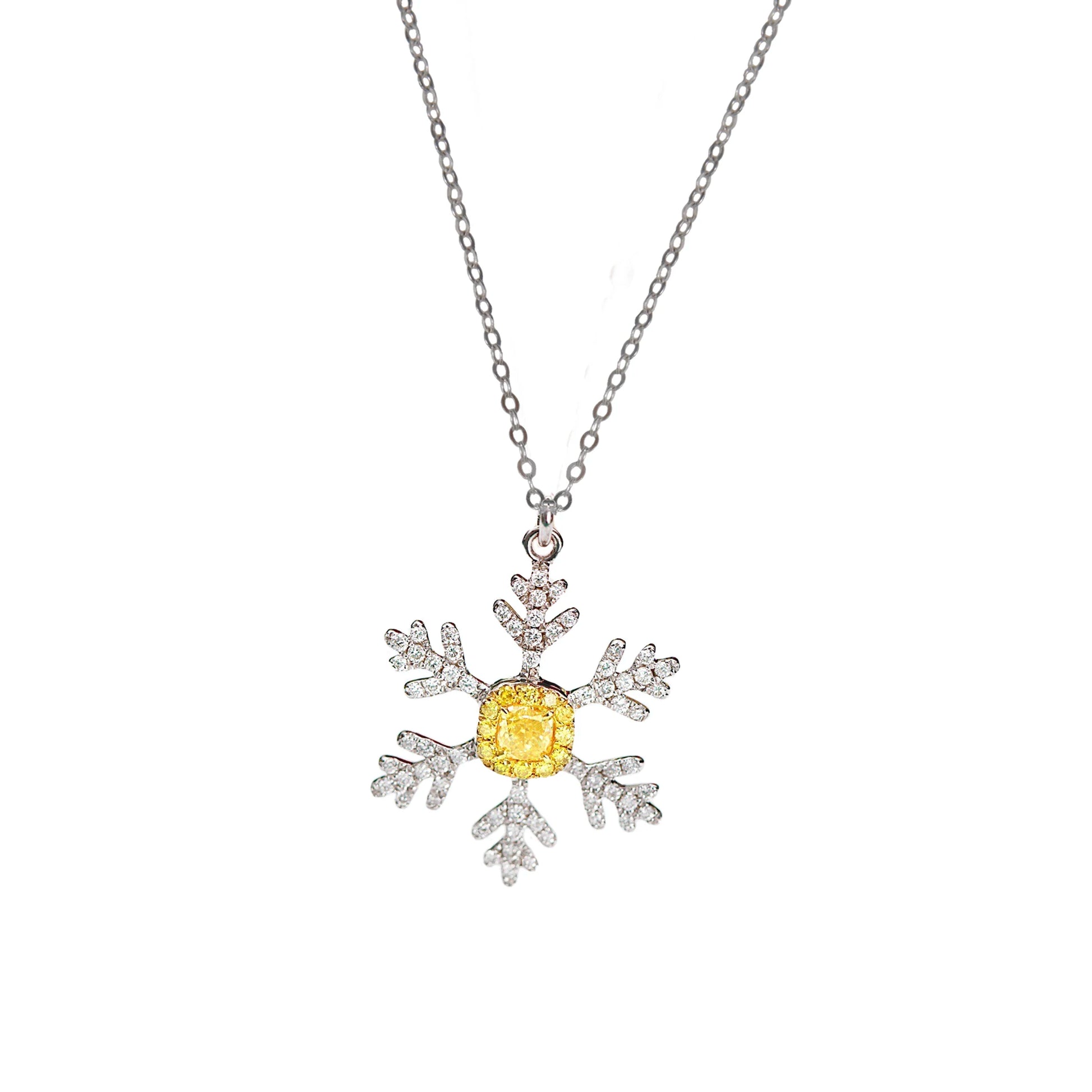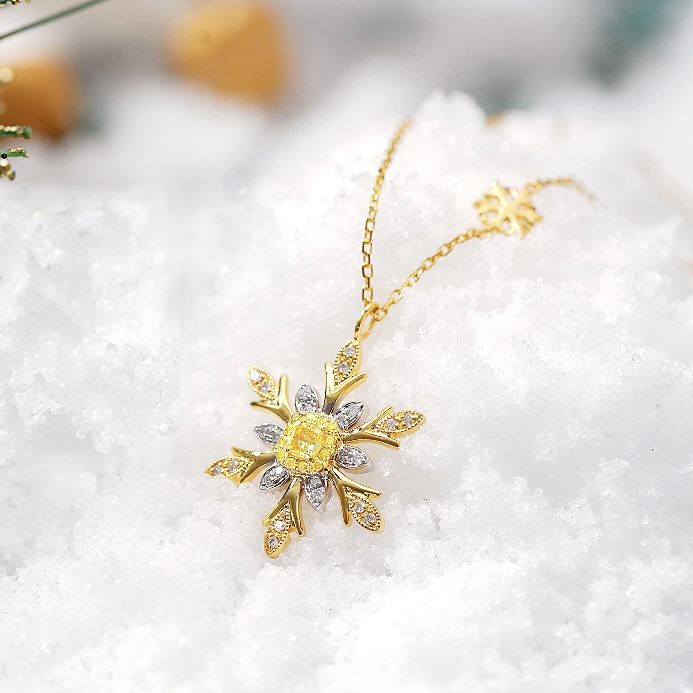 New Best Design Solid 18k Gold Necklace Real Yellow Diamond Necklace Snowflake Necklace with Adjustable Custom for Christmas