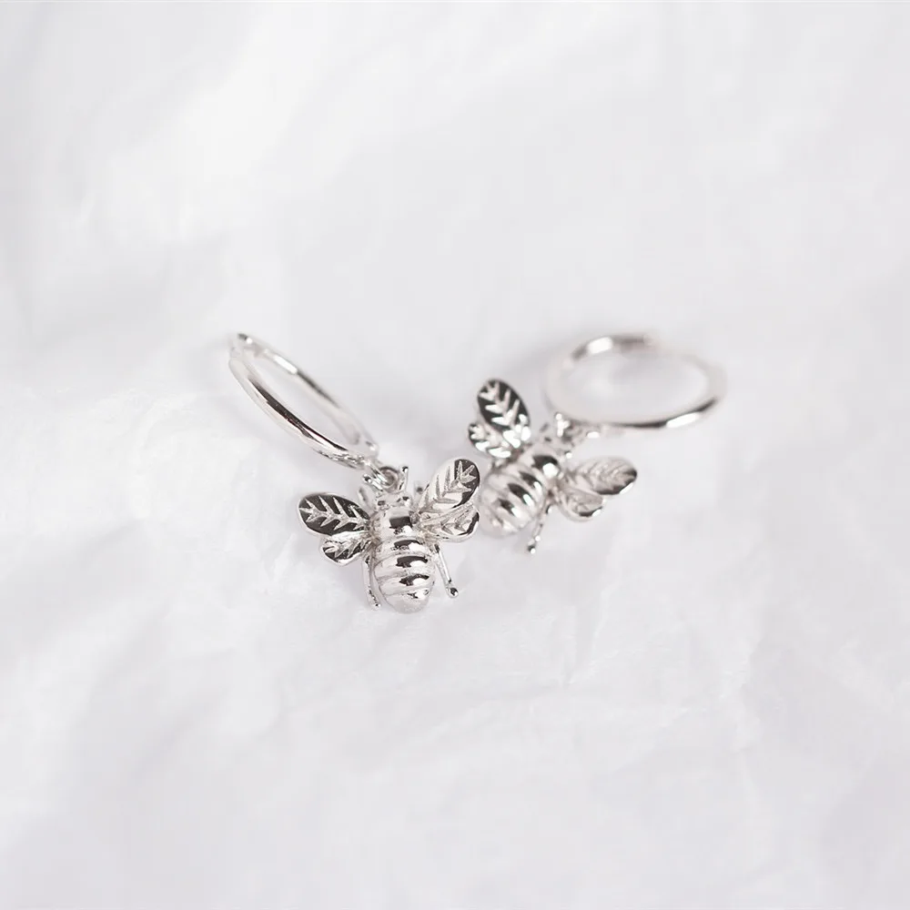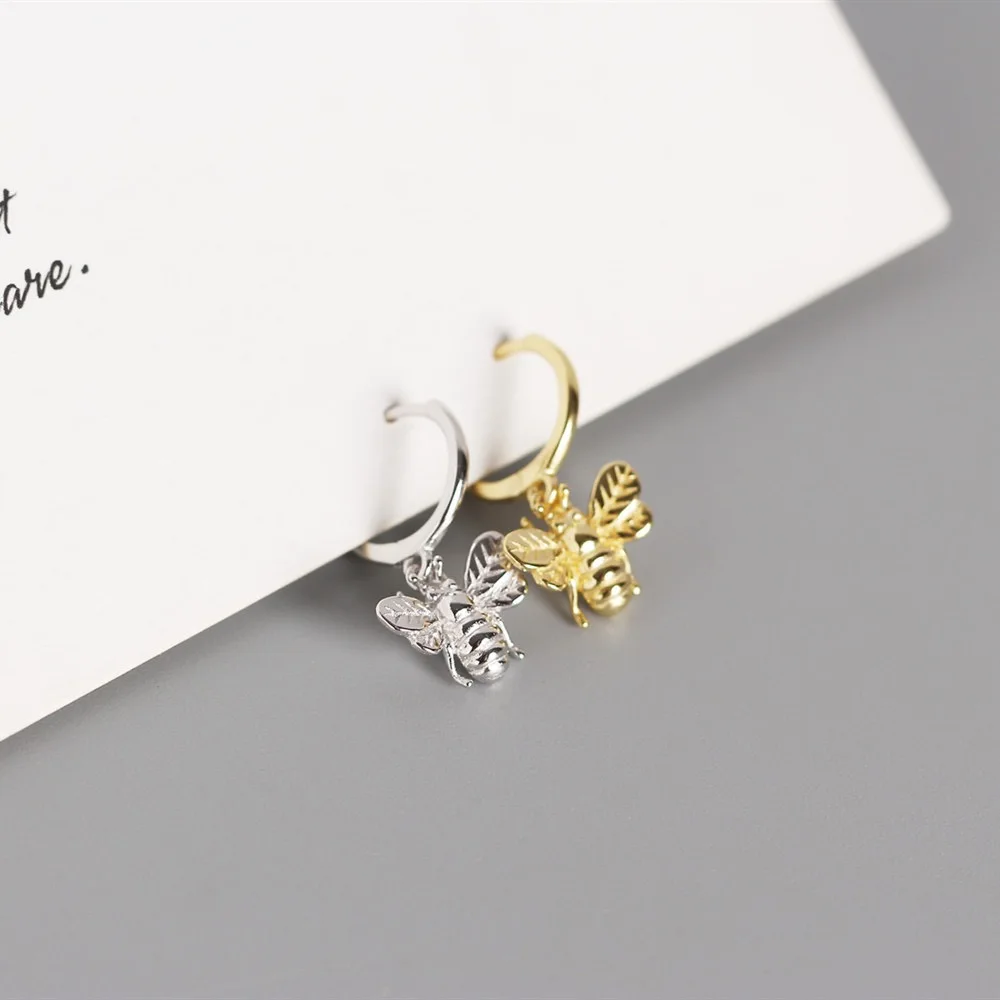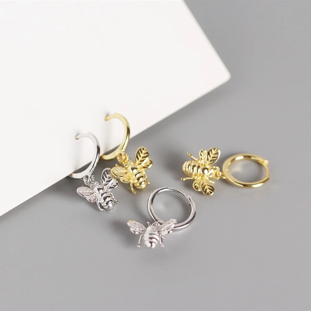 New Fashion 925 Sterling Silver Plain Dangling Animal Bee Shape Insects 18k Gold Plated Hoop Earrings for Women