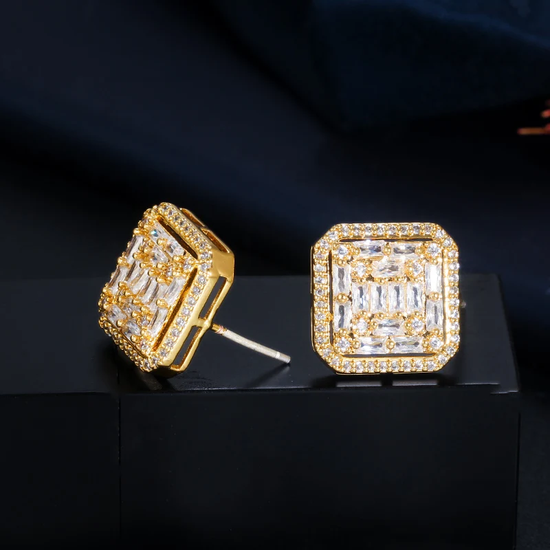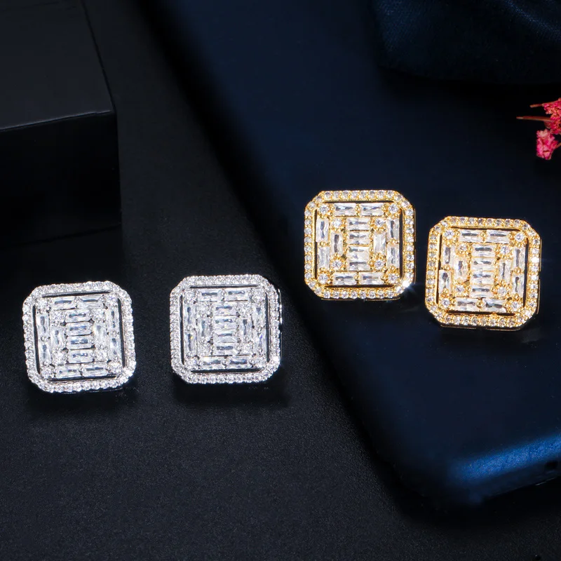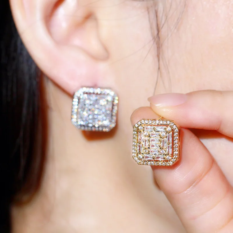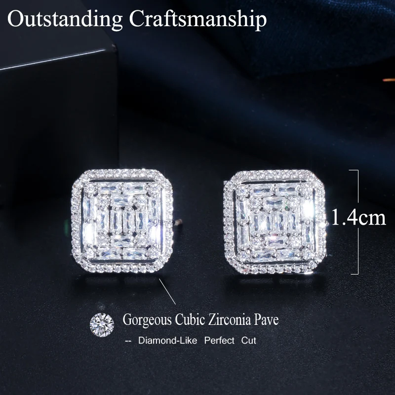 New Fashion Gorgeous Fancy Cubic Zirconia Big Square Stud Earring for Women White Gold Plated Wedding Bouquet Jewelry