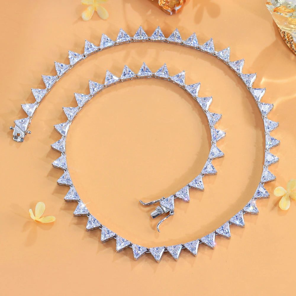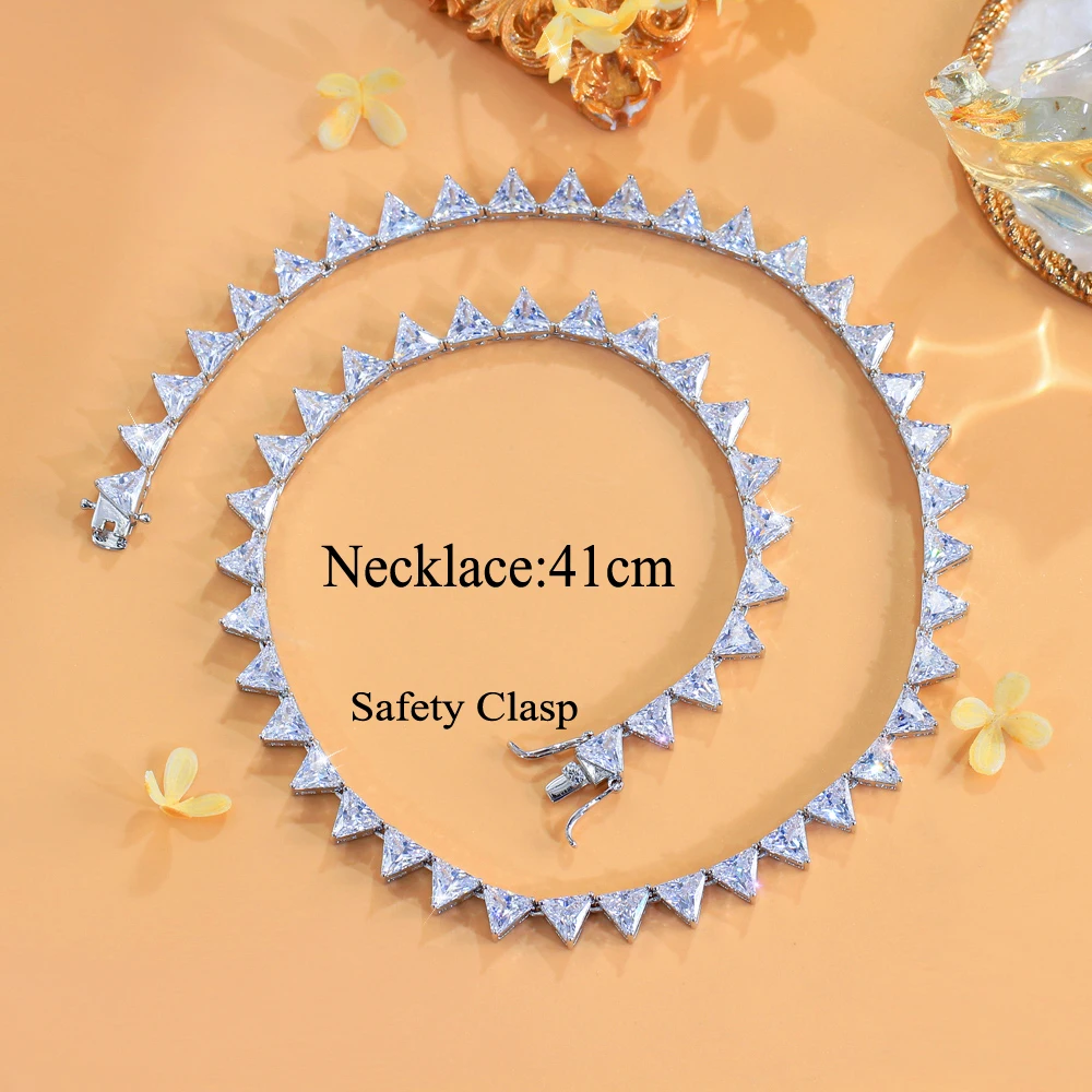 New Fashion Shiny White Triangle Shape Cubic Zirconia Bridal Wedding Tennis Necklace for Women Elegant Daily Party Jewelry