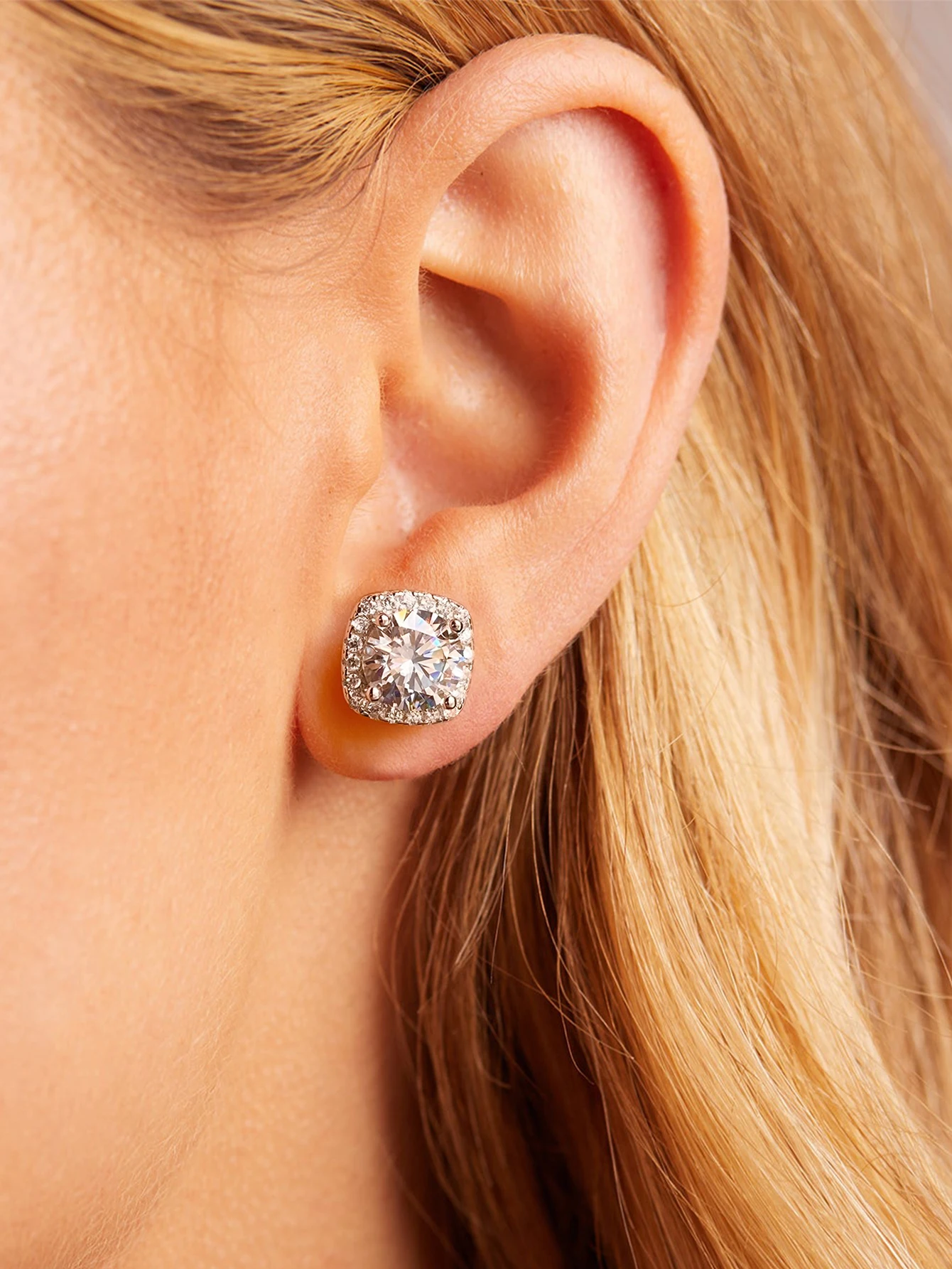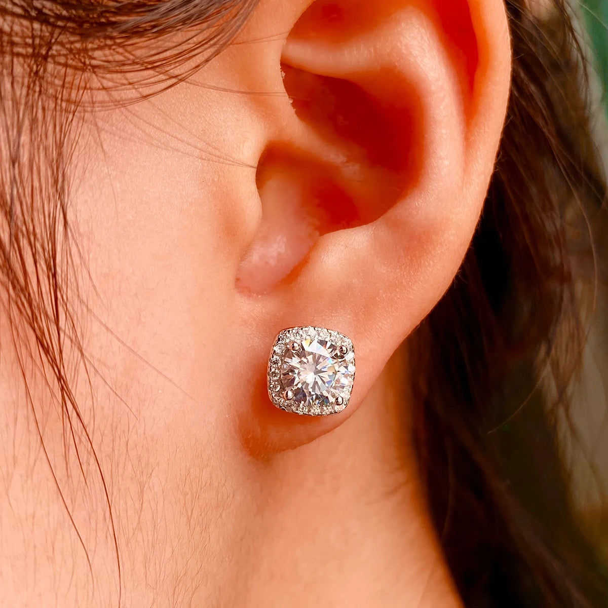New Luxury 925 Sterling Silver Full Drill Square Stud Earrings 1ct Moissanite Fine Jewelry Weddings Bridal Trendy Style Gifts
