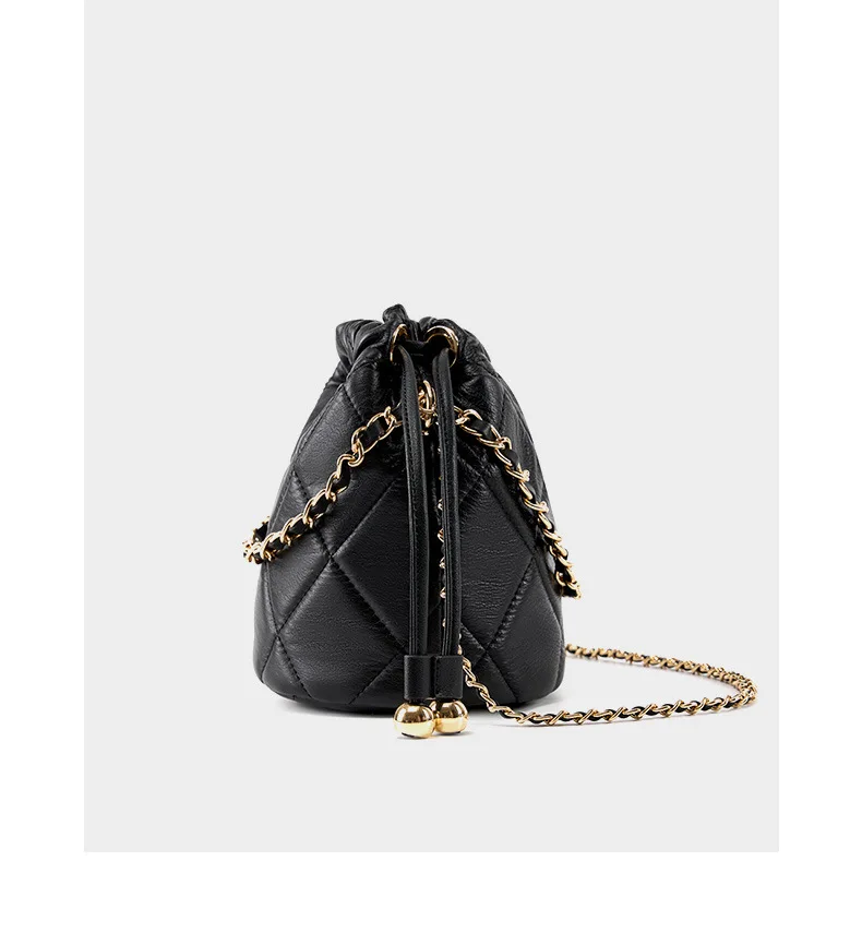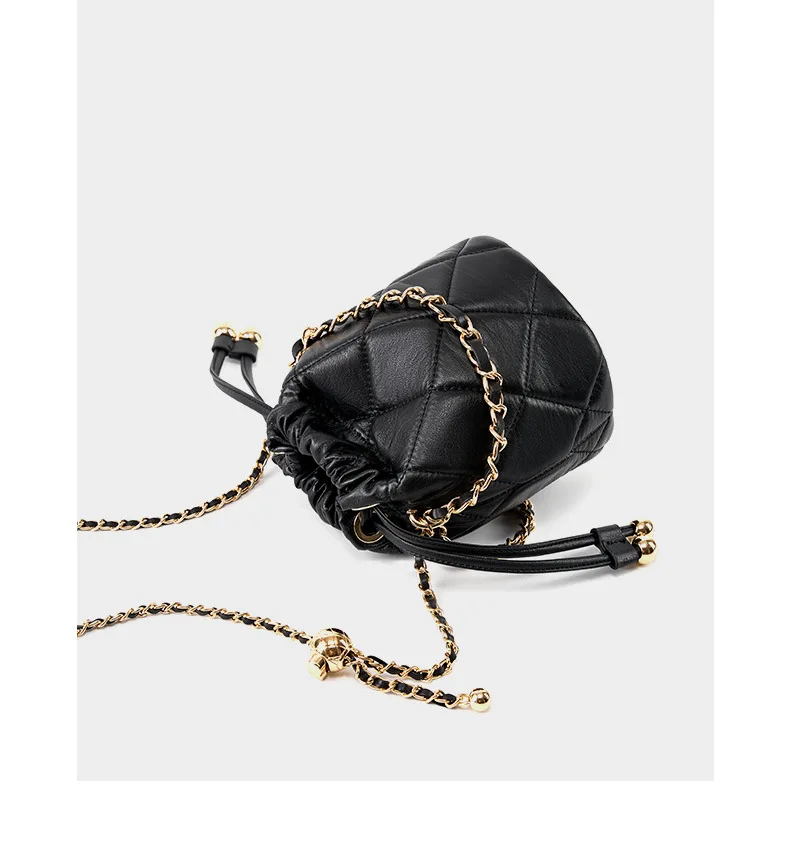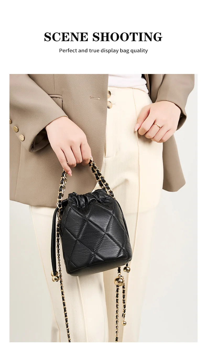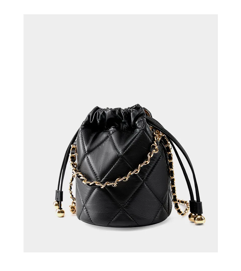 New Trend Luxury Quilted Bucket Bag for Women Genuine Leather Crossbody Mini Shoulder Phone Bag Durable Chain Custom Lady