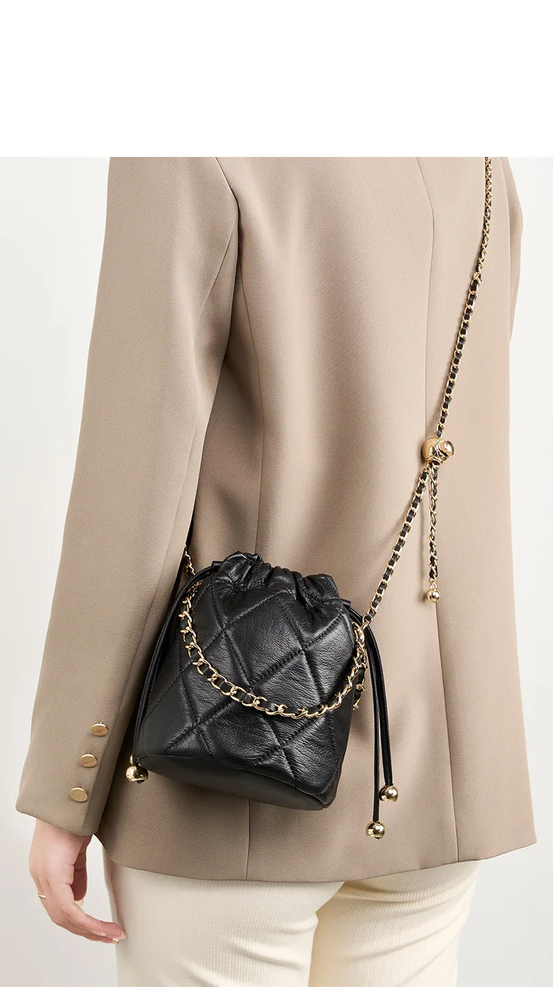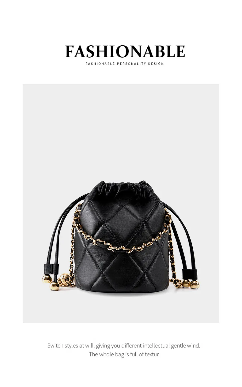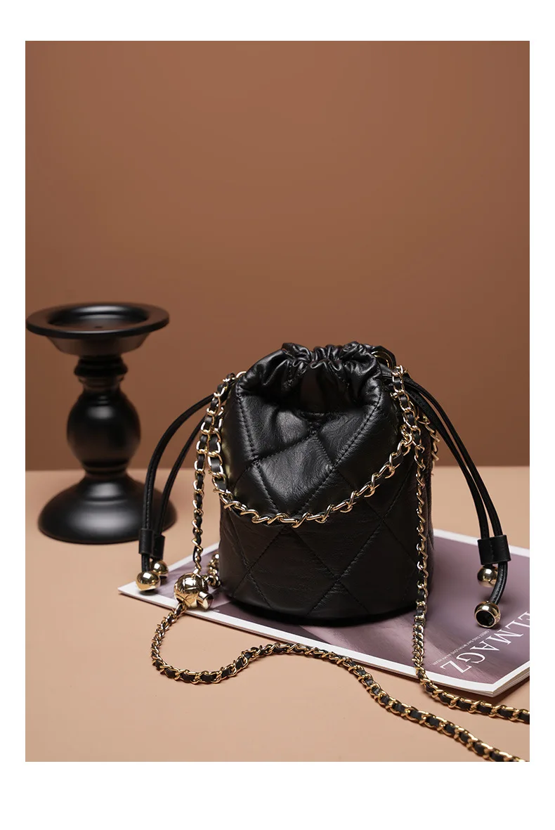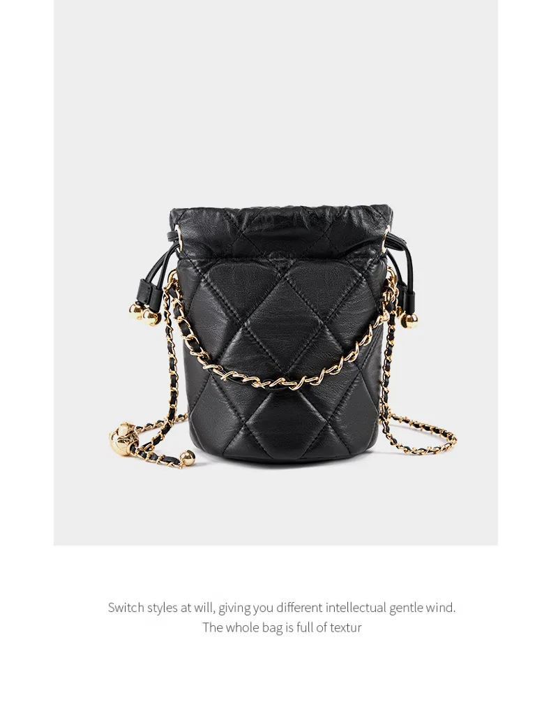 New Trend Luxury Quilted Bucket Bag for Women Genuine Leather Crossbody Mini Shoulder Phone Bag Durable Chain Custom Lady