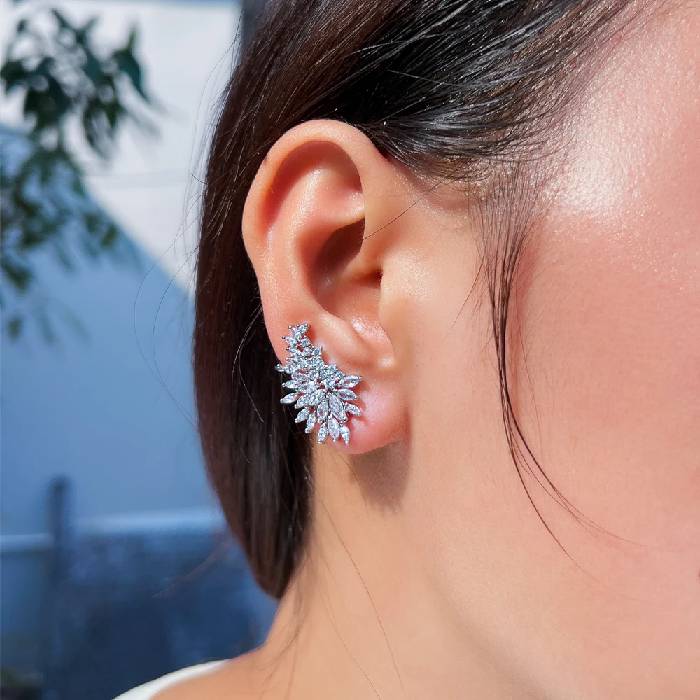 New Trendy Shiny Cubic Zirconia Ear Cuff Climbing Design Ear Post Stud Earrings for Women Fashion Daily Party Piercing Jewelry