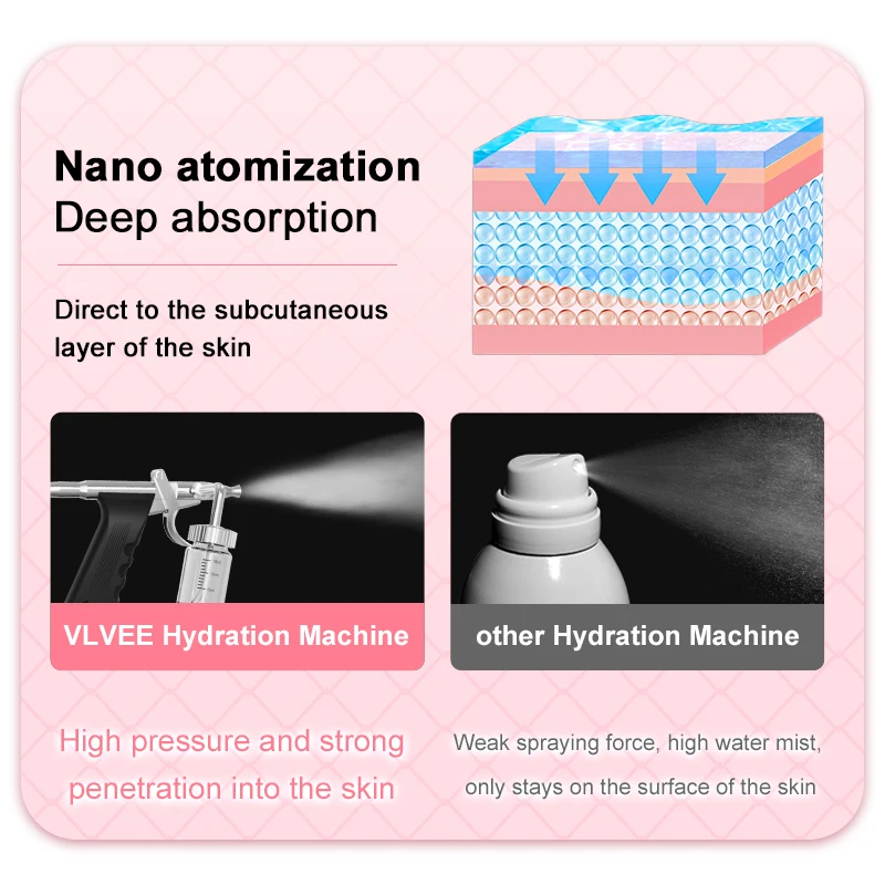 Through high-pressure spraying, nutrients can be better penetrated into the bottom layer of the skin, enhancing the skin's ability to absorb skincare products and improving skincare effectiveness.