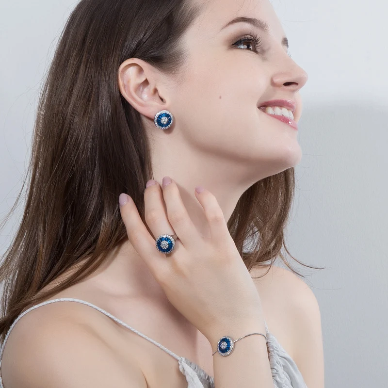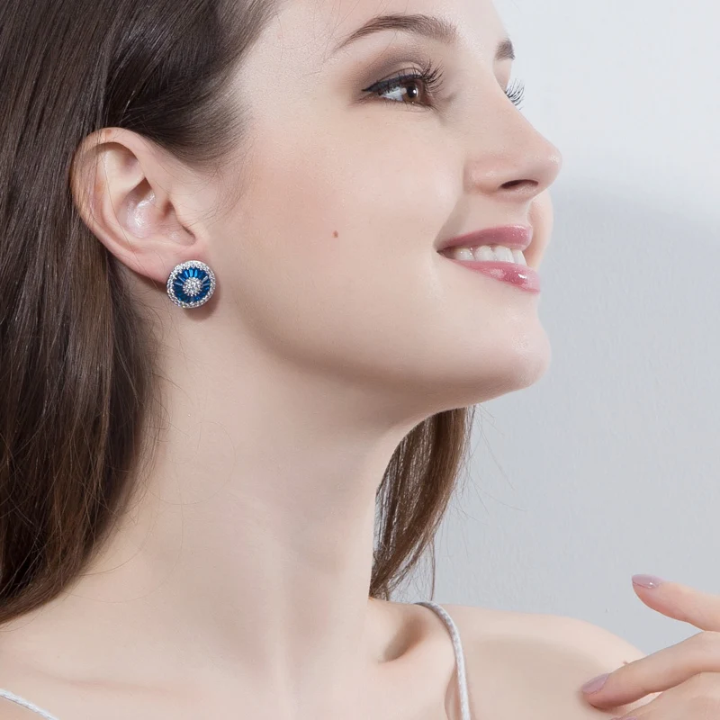 Noble Romantic Dark Blue Crystal Jewelry Luxury Round Cubic Zircon Wedding Big Stud Earrings for Women Party Gift