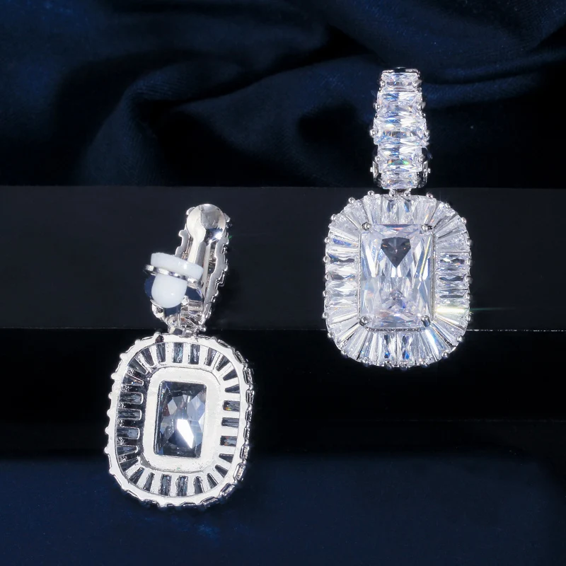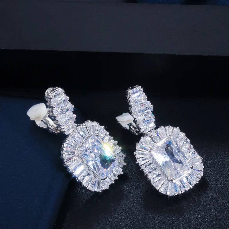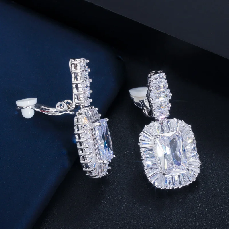 Non Pierced Ear Gorgeous Top Cubic Zirconia Crystal Women Wedding Evening Party Clip on Long Earrings Without Piercing