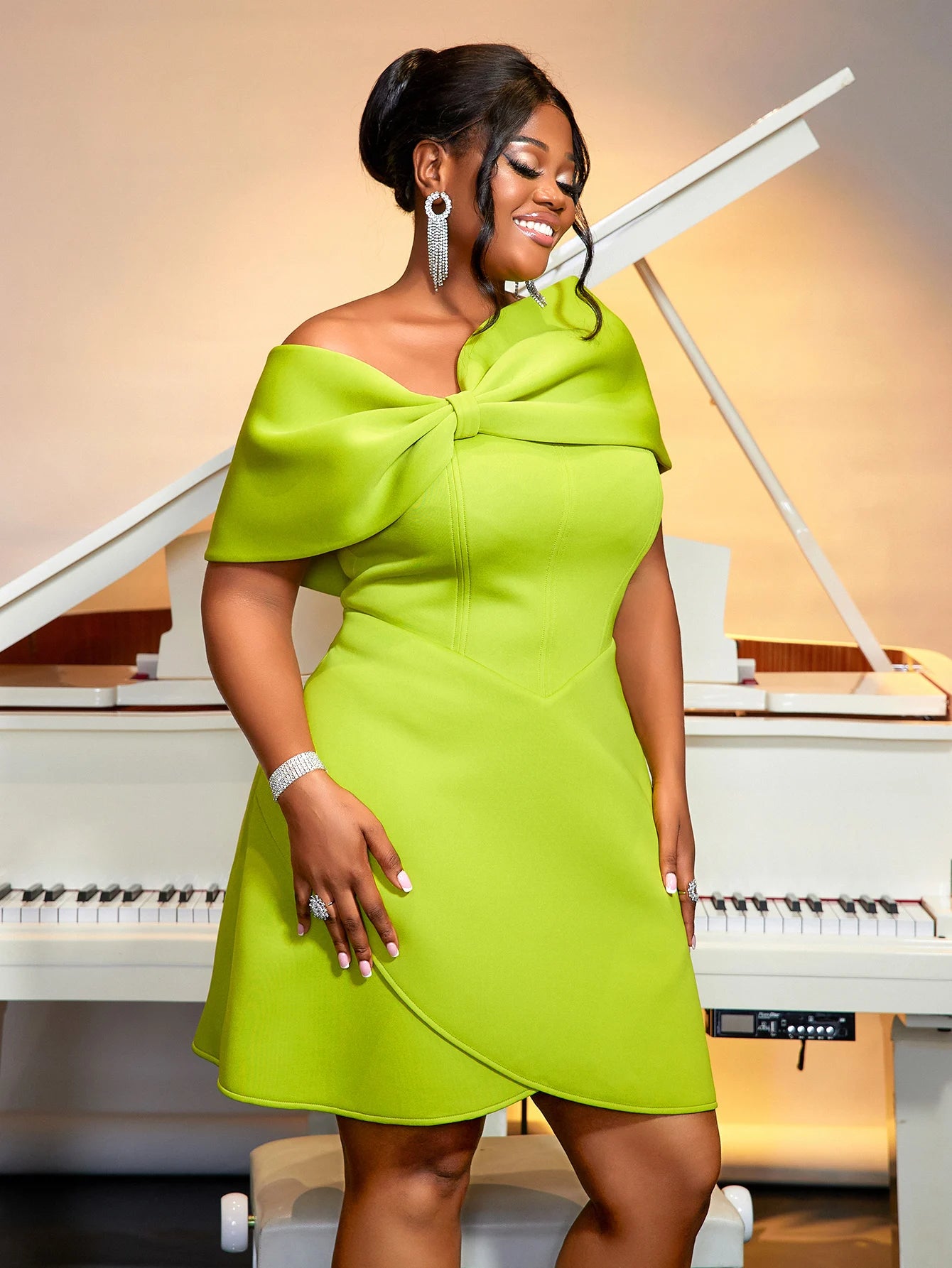 New Arrival 2025 Autumn Winter Off Shoulder Irregular Slash Neck Large Bow a Line Cocktail Dresses