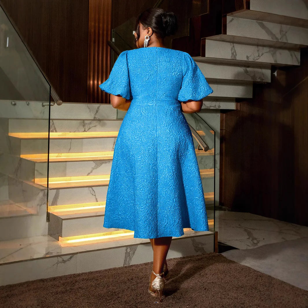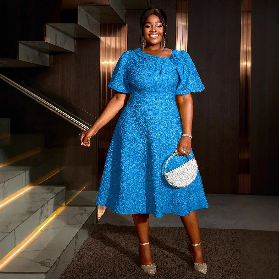 Plus Size African Jacquard Party Dress for Women - Elegant A-Line Evening Gown for Curvy Fashion
