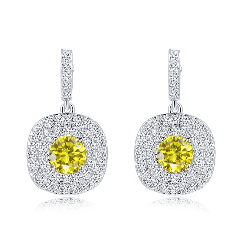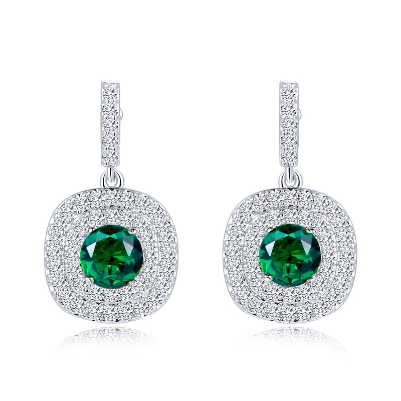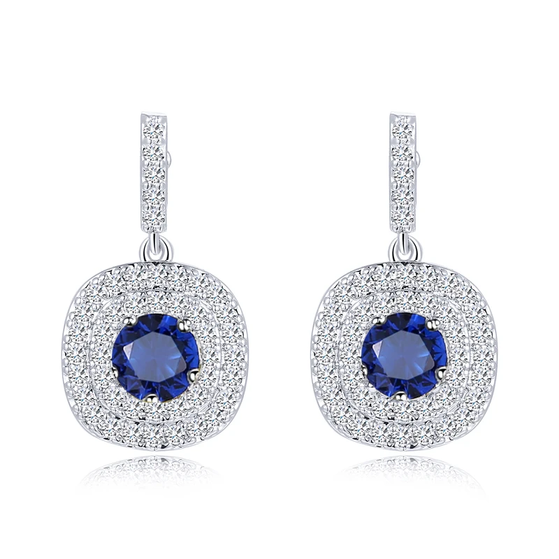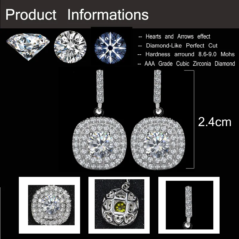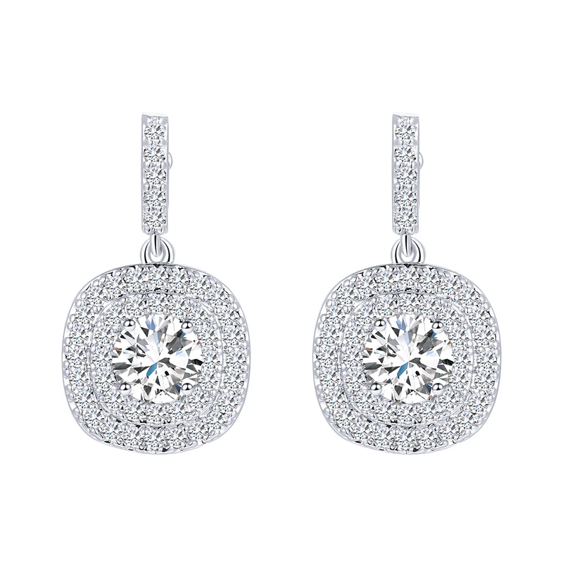 Quality Mirco Paved Full Cubic Zirconia Square Shiny White CZ Stone Dangle Drop Earrings for Women Classic Chic Fashion Jewelry