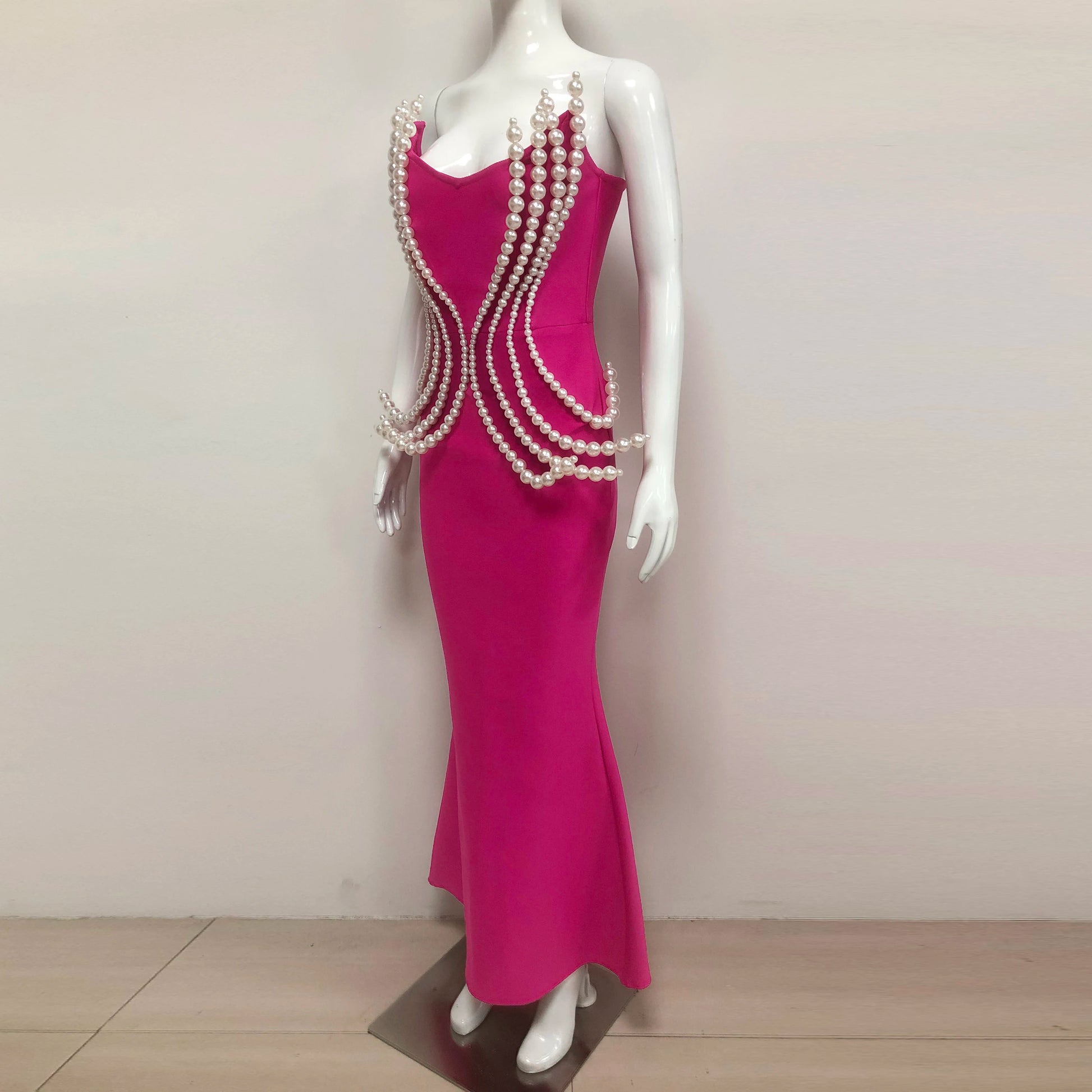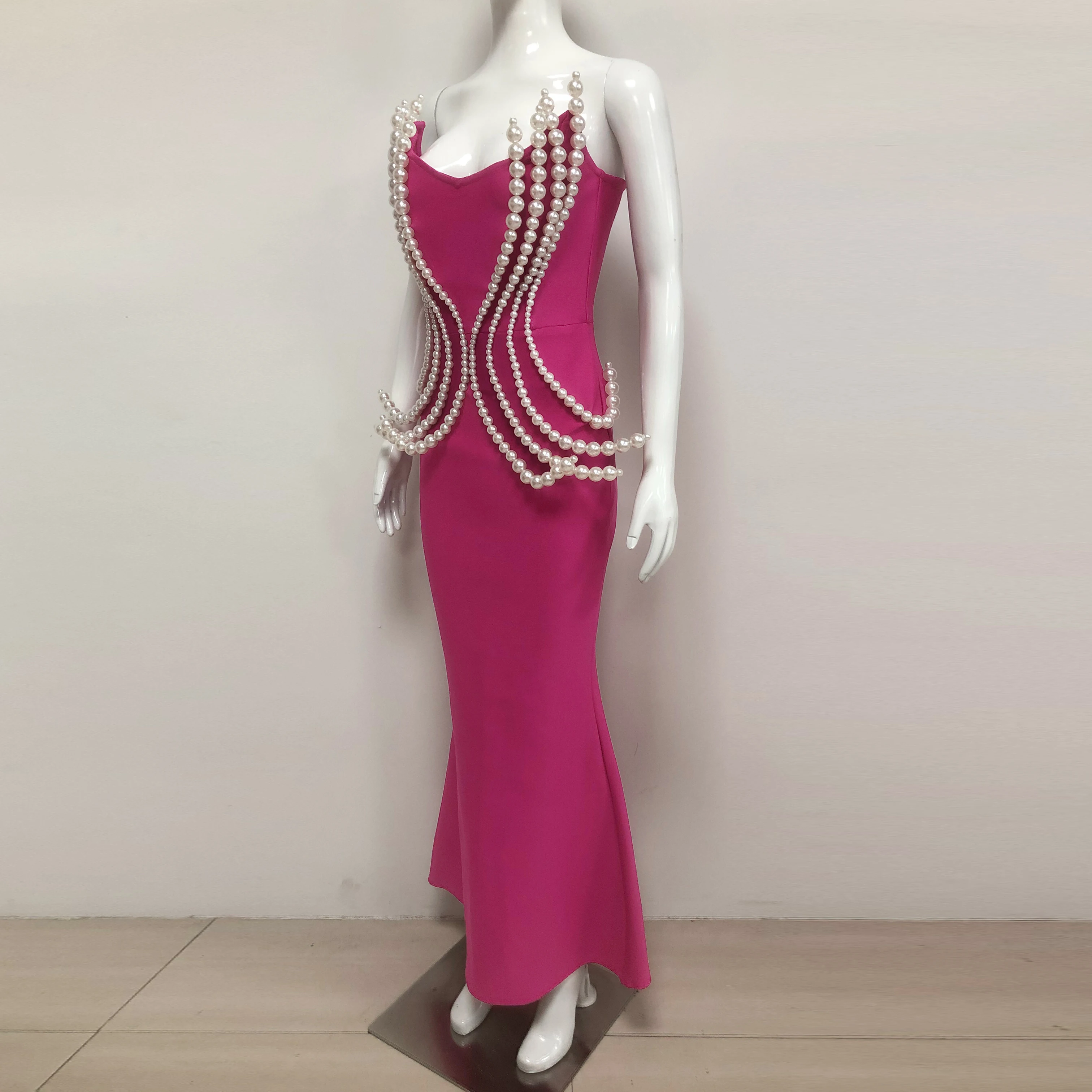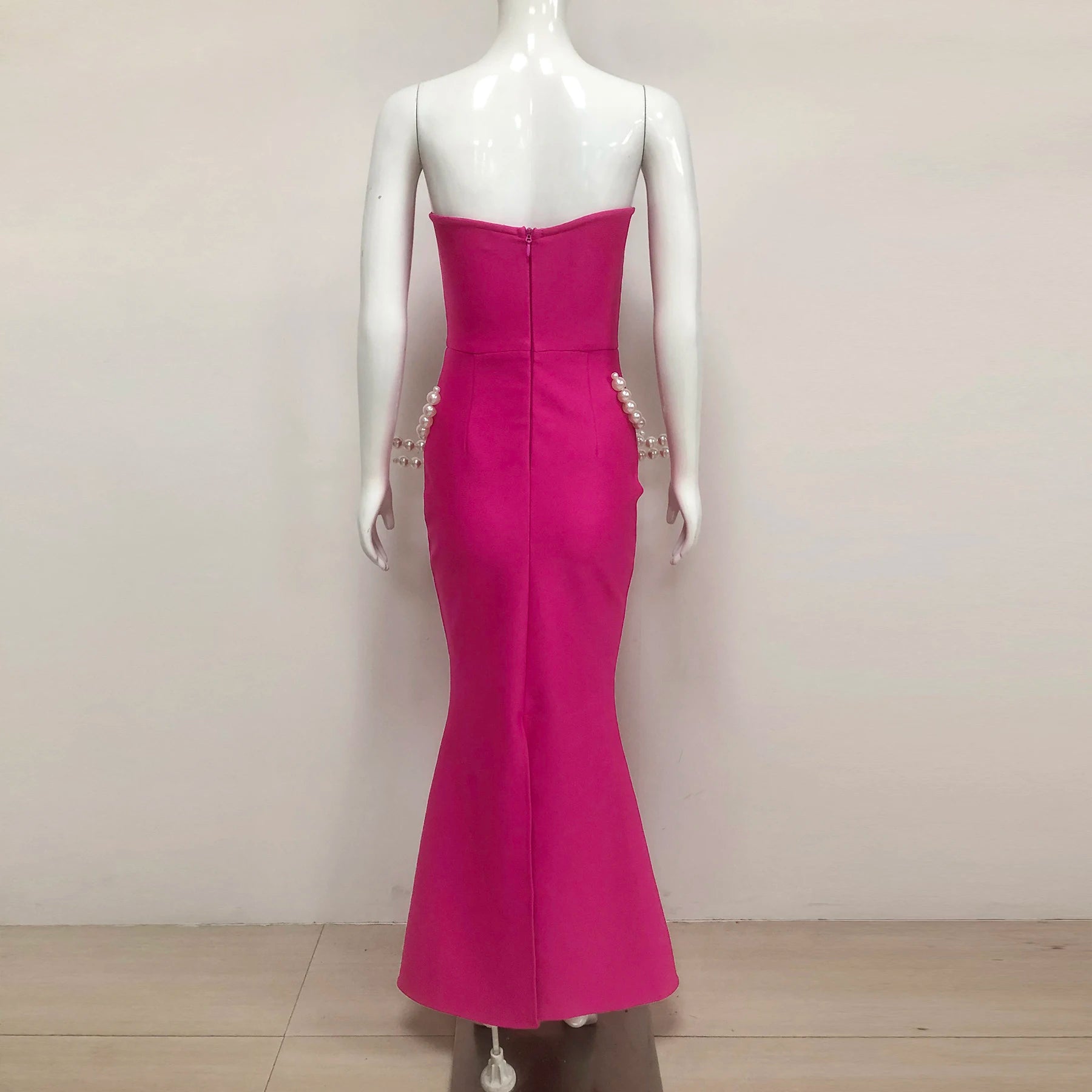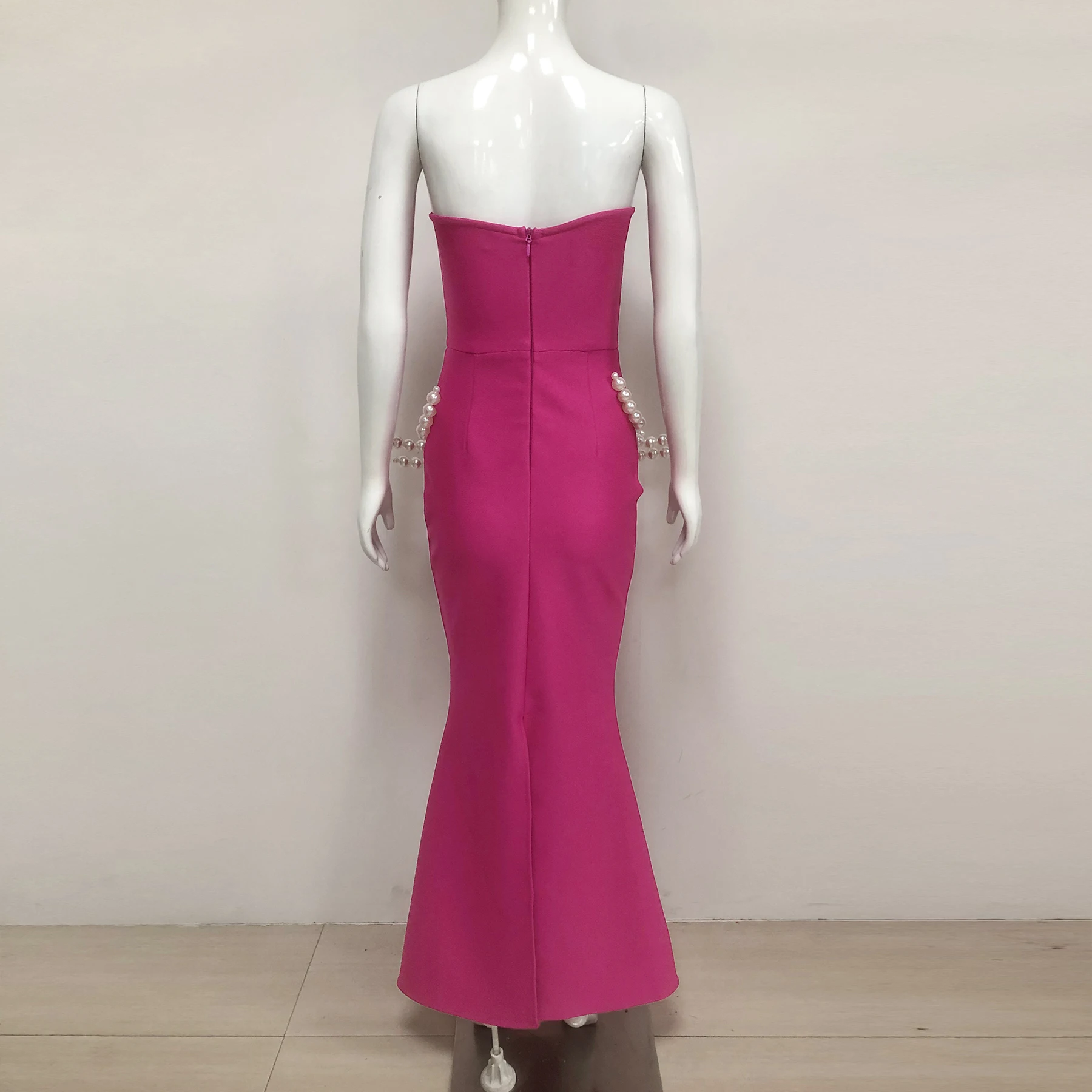 Sexy Red Wedding Party Dress Pearl Beading Strapless Bodycon Prom Gown Formal Luxury Evening Dresses With Pearls