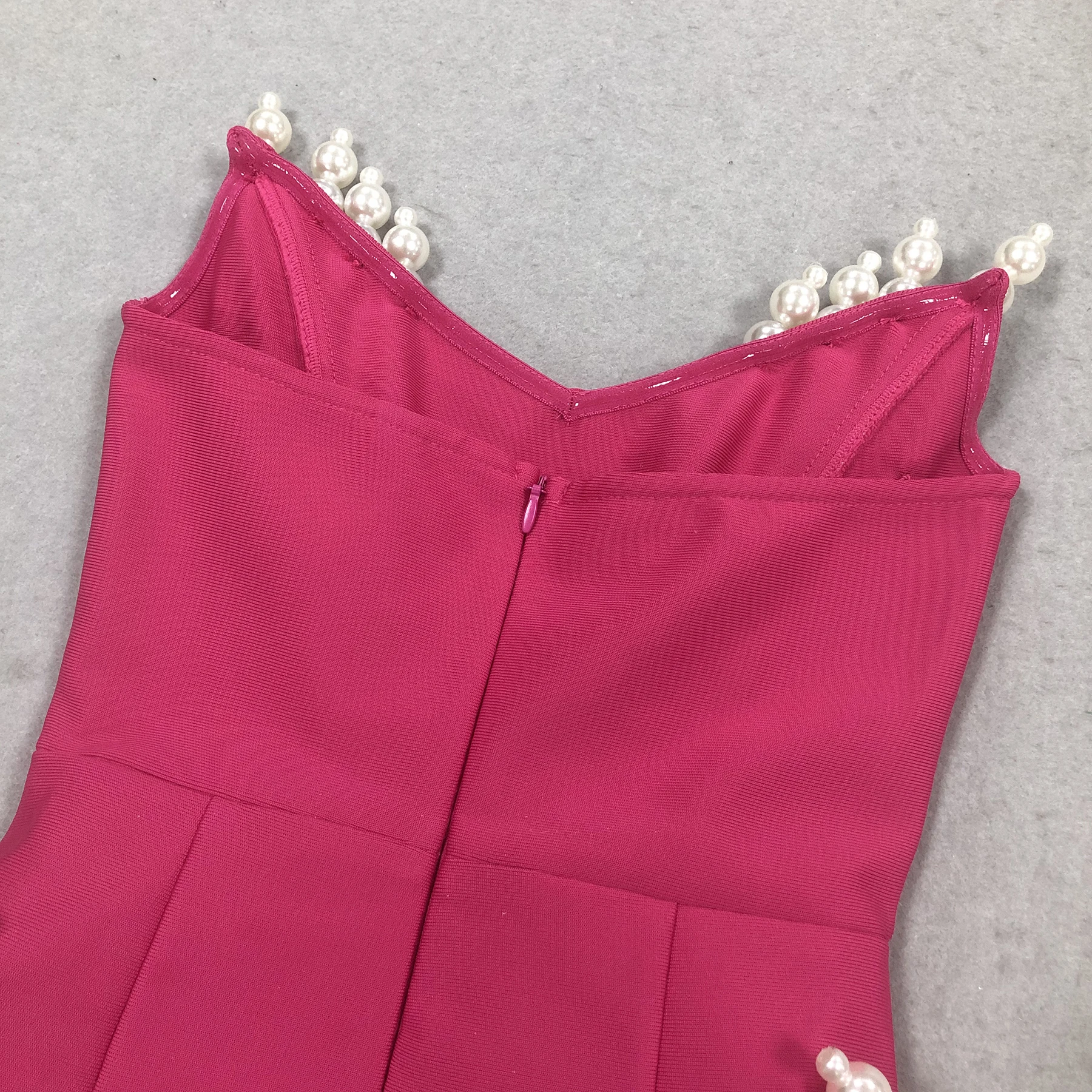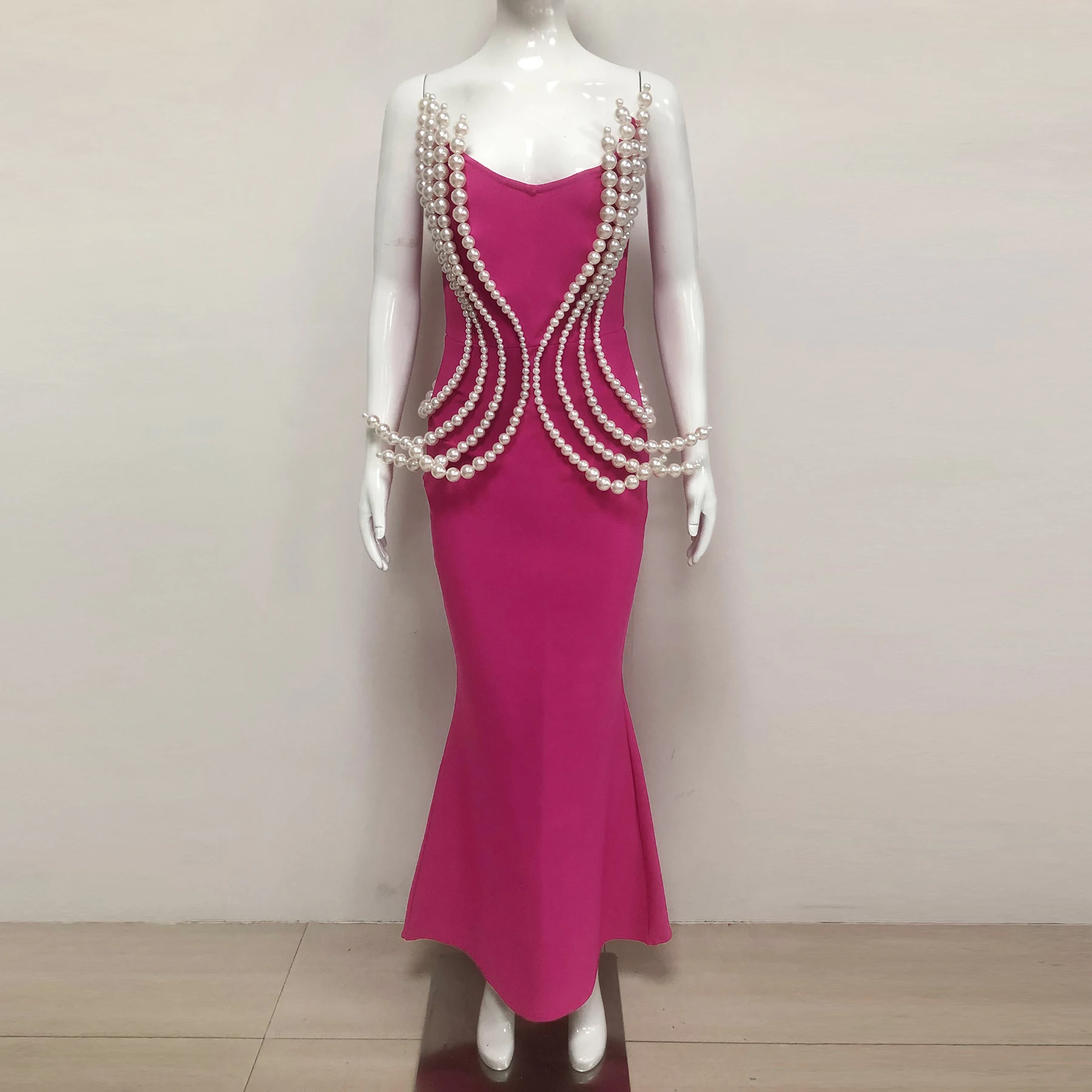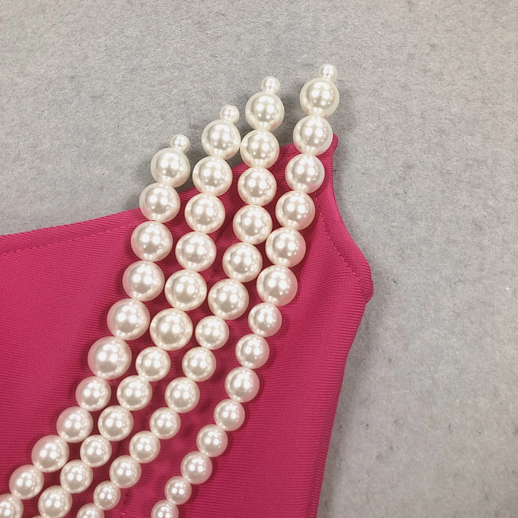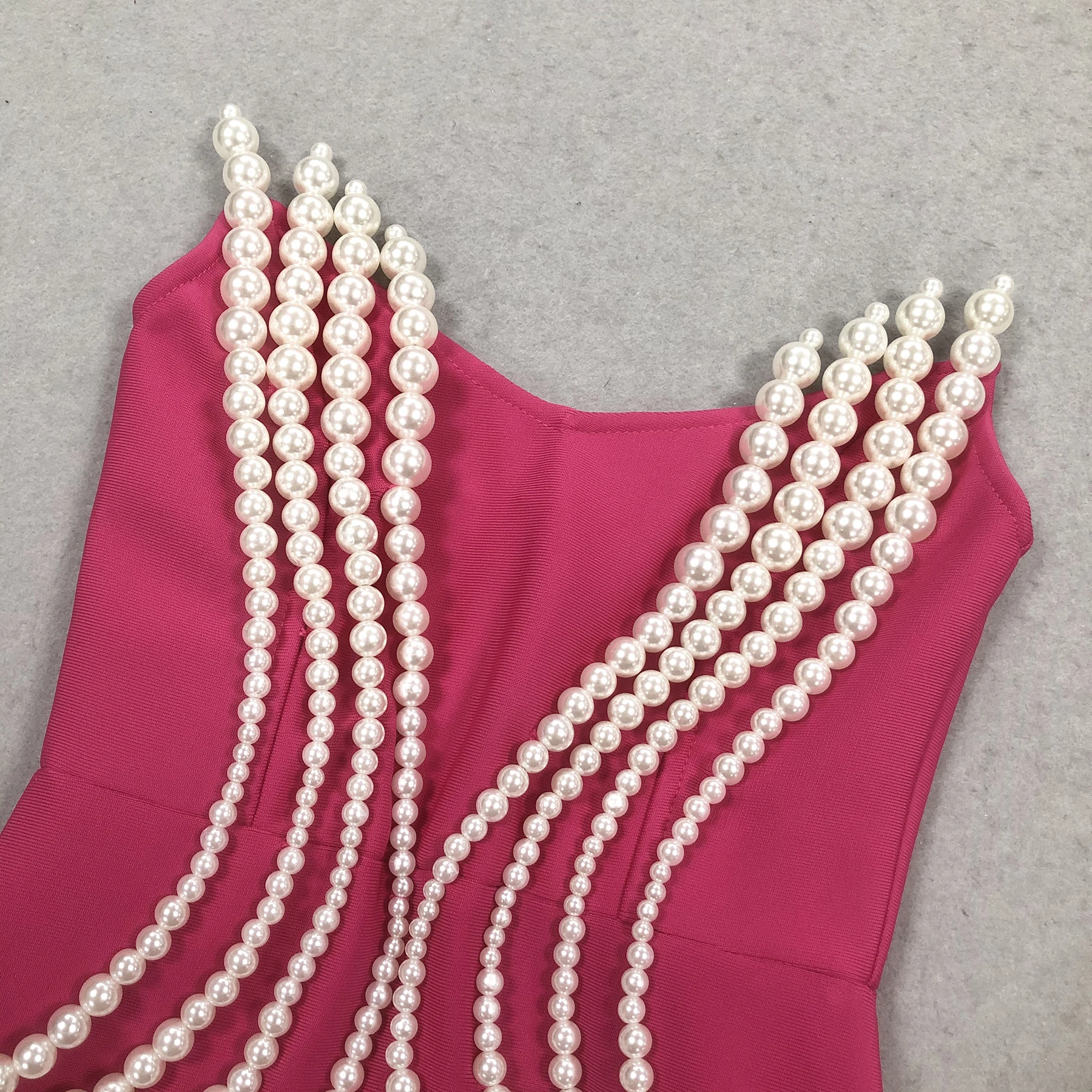 Sexy Red Wedding Party Dress Pearl Beading Strapless Bodycon Prom Gown Formal Luxury Evening Dresses With Pearls