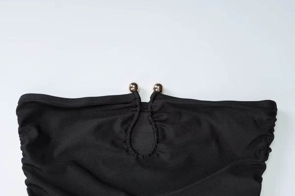 Sexy V-Neck Slim Pure Color Summer New Arrival Cross-Border Women's Dress Sleeveless Elegant Folded Skirt Dress