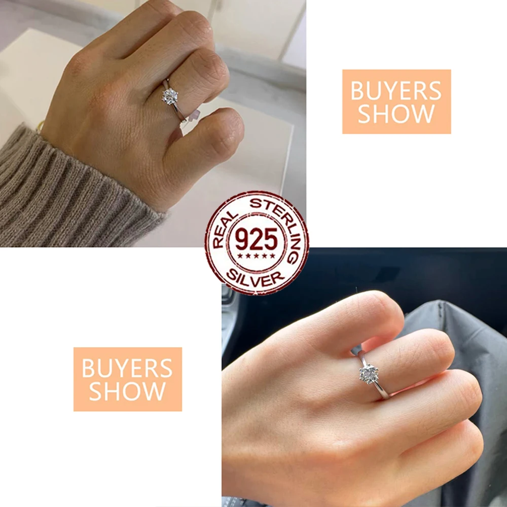Shiny Pretty 6.5mm Cubic Zircon Crystal S925 Sterling Silver Adjustable Weddings Engagement Ring for Women Finger Jewelry