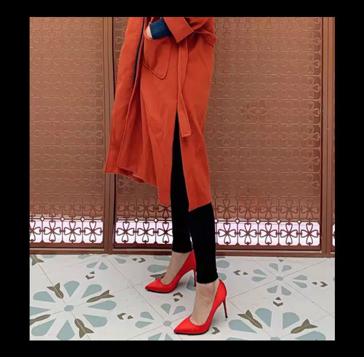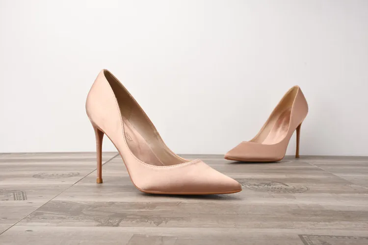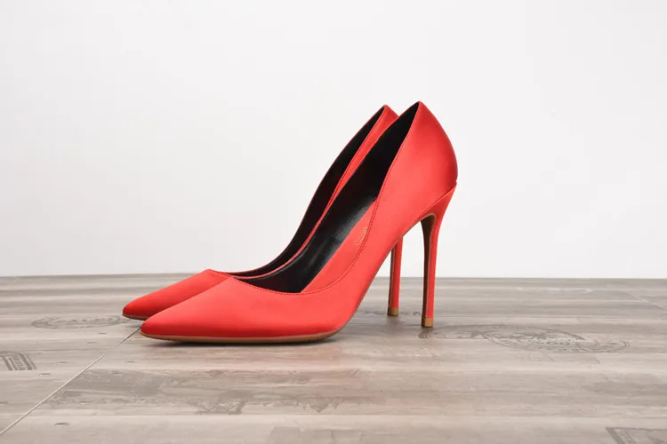 Shoes 6cm 8cm 10cm Silk and Satin Patent Leather Thin High Heels Pointed-Toe Pumps for Women
