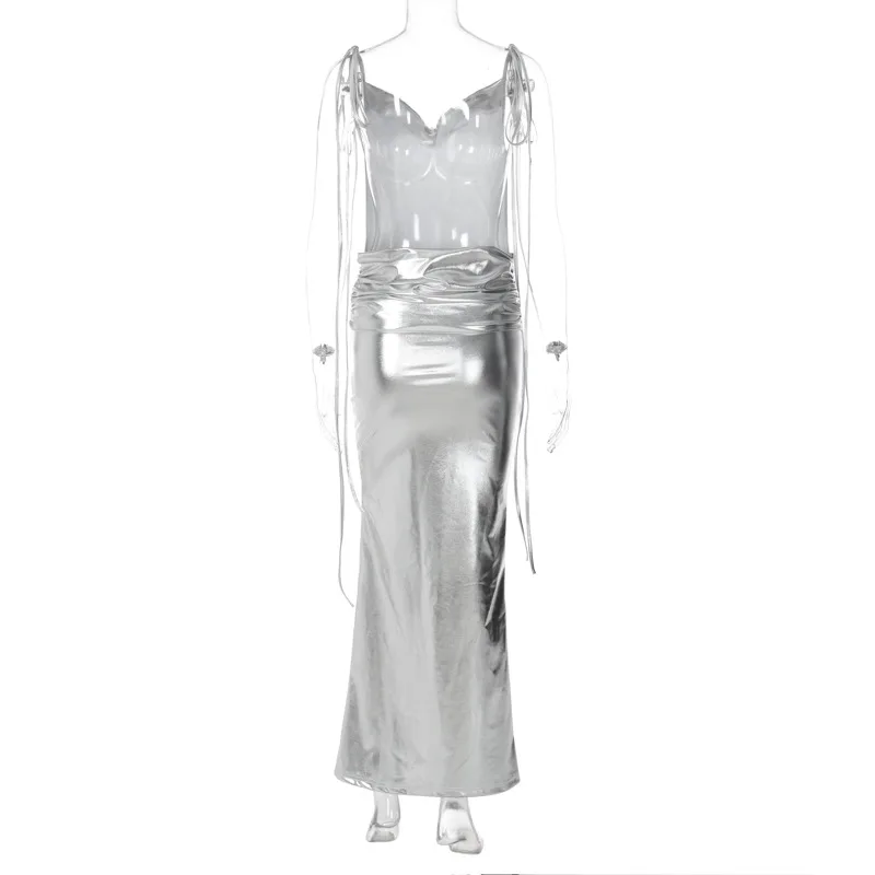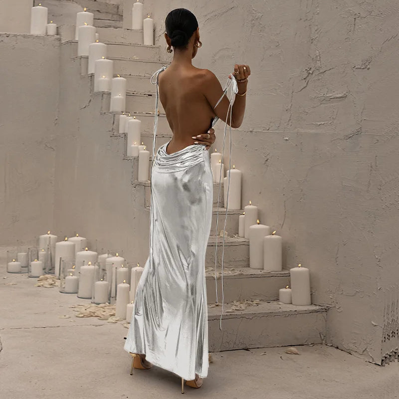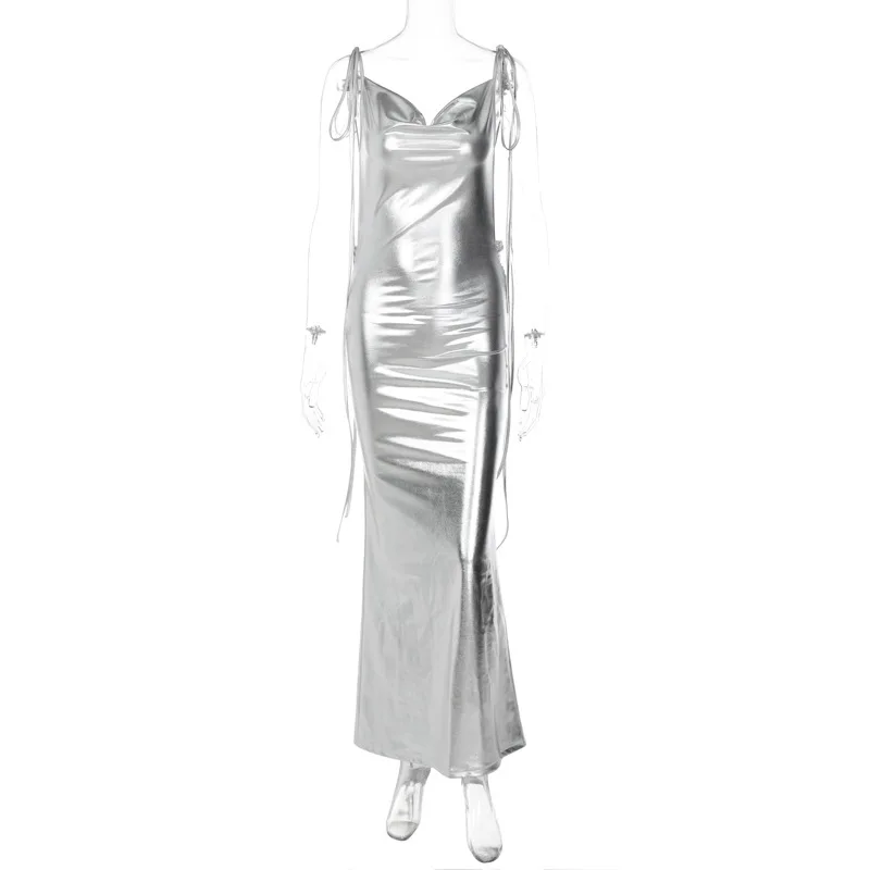 Silver Sexy Elegant Evening Dresses Women Girls Ladies Sexy Party Club Dress Fashion Slip Maxi Dresses
