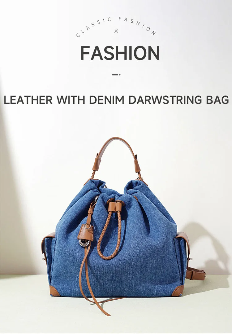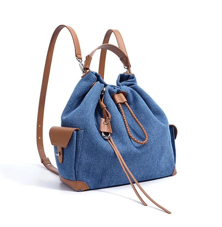 Simple Fashion Genuine Leather Ladies Shoulder Crossbody Bags High Quality Denim Backpack Women's Purses and Handbags