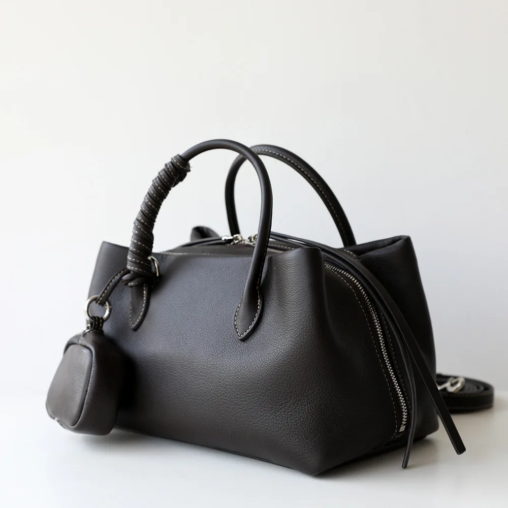 Single Shoulder Crossbody Design Cowhide Purse Lazy Style Multiple Compartments Zipper Closure Polyester Lining Polyether