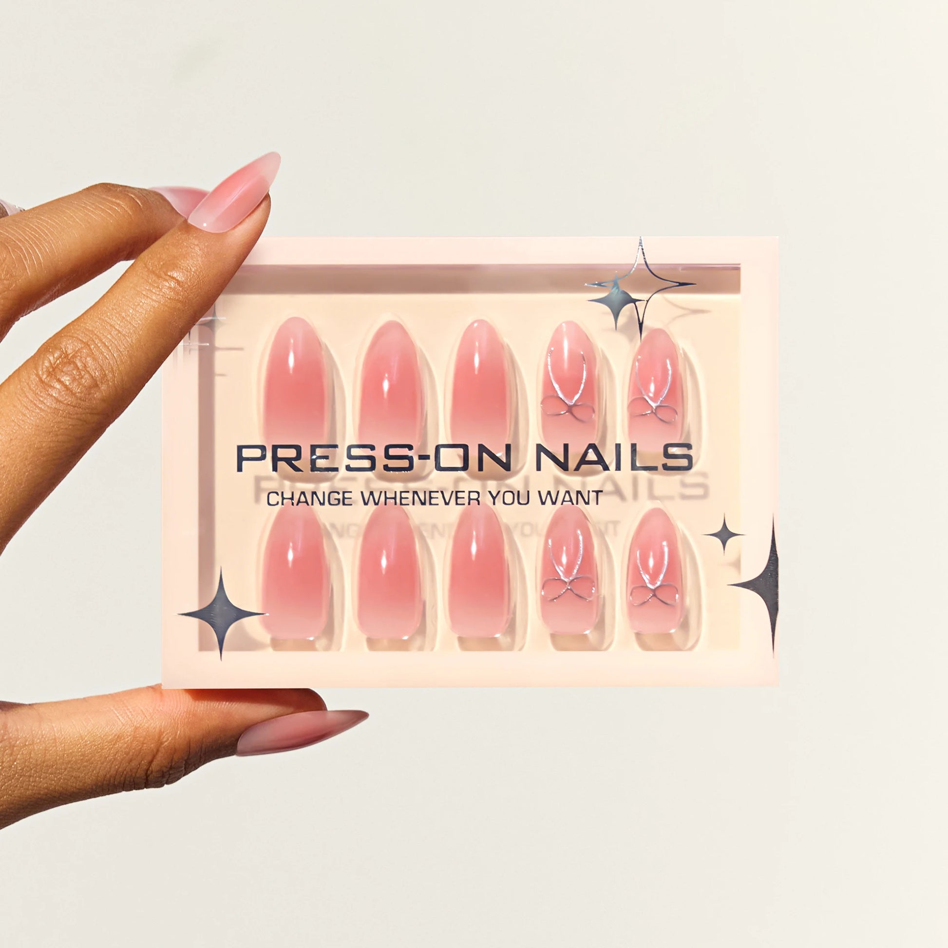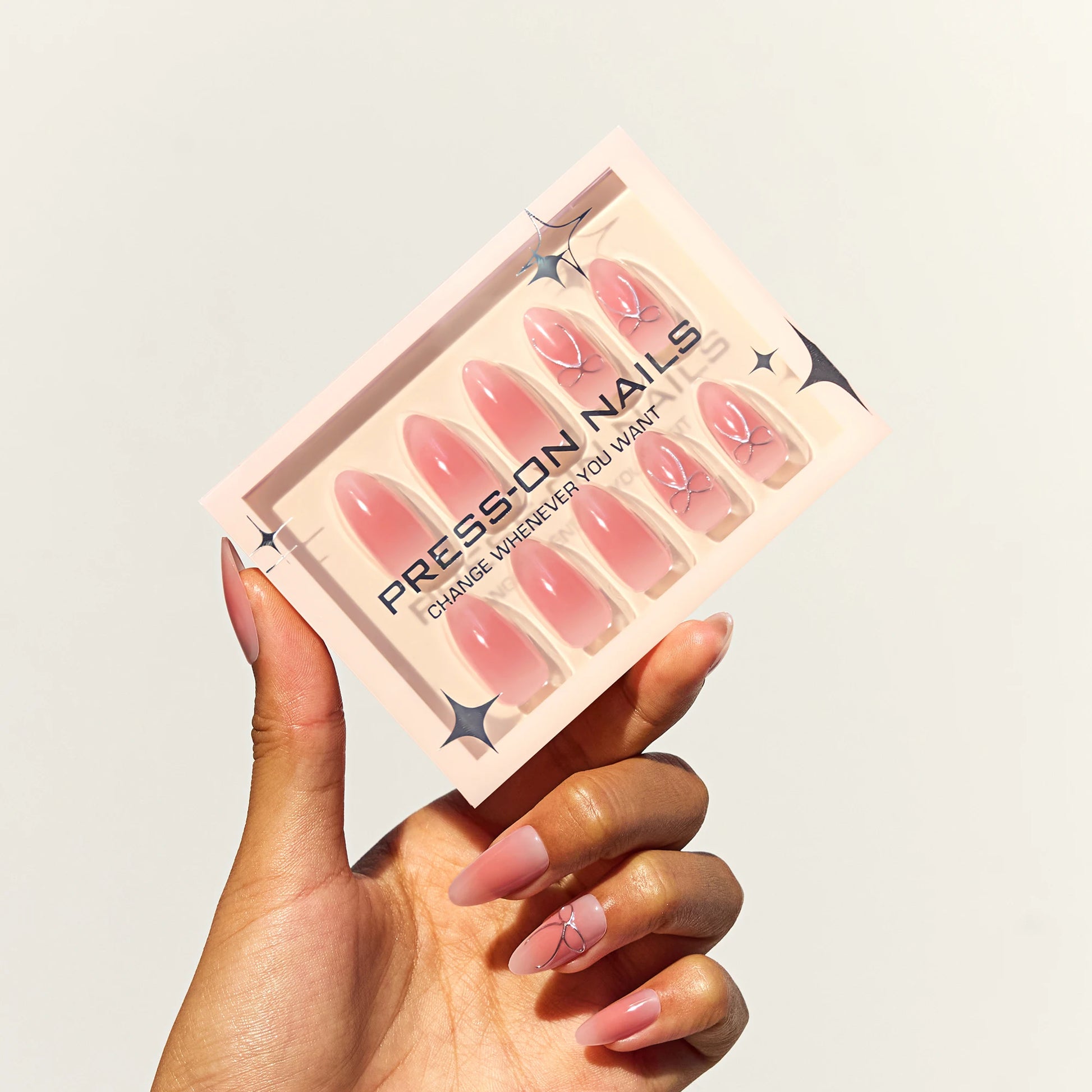 Solid color press on nails Pink nails press on Almond 3D fake nails acrylic nails beauty supply Butterfly tie nail art nail tips