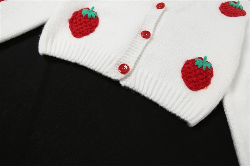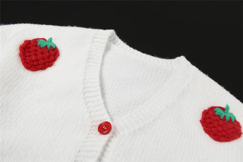Strawberry Embroidery Cropped Sweater for Women Knit Cardigan Female Winter Autumn Long Sleeve Loose Flower Sweater