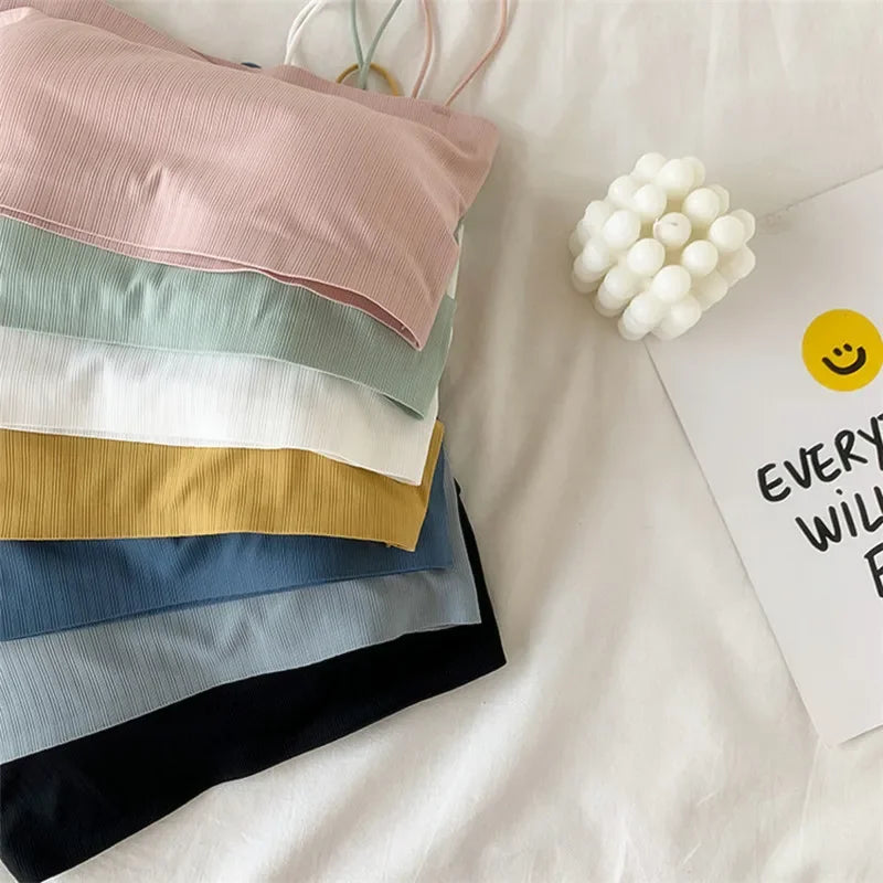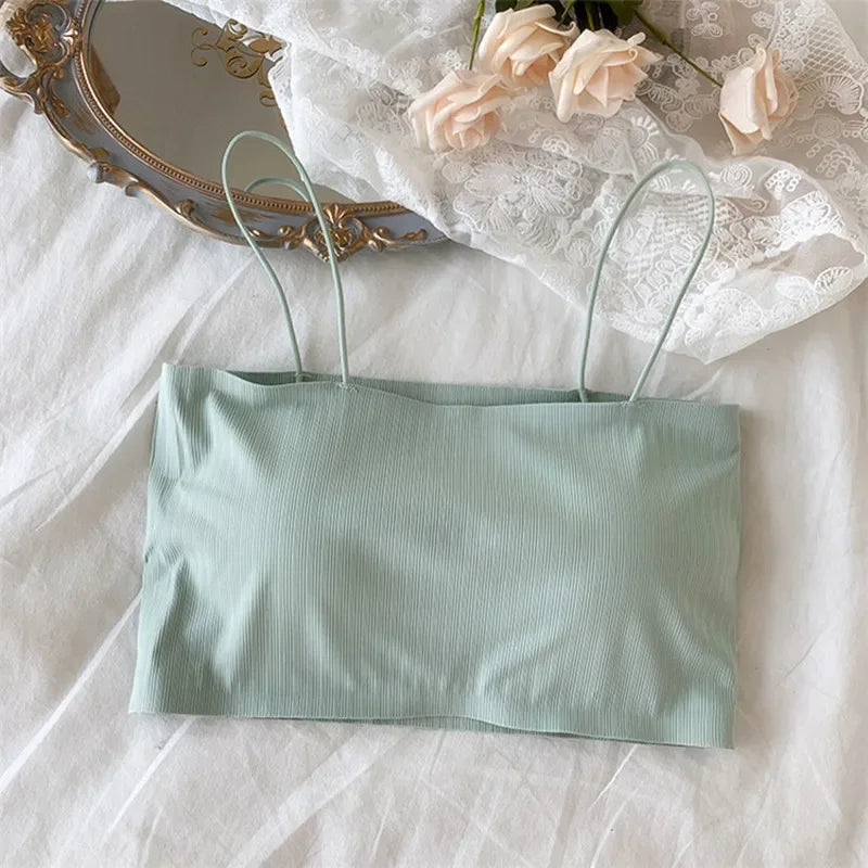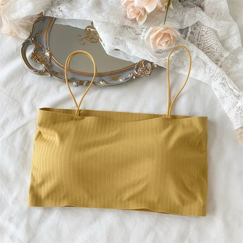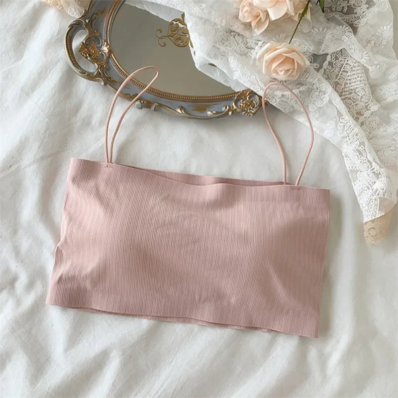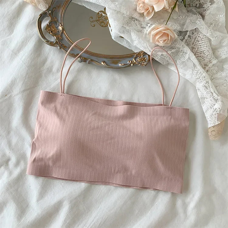 Summer Tube Bras For Women Sexy Seamless Underwear Crop Tops Sexy Lingerie Silky Bandeau Bra Removable Pads Intimates