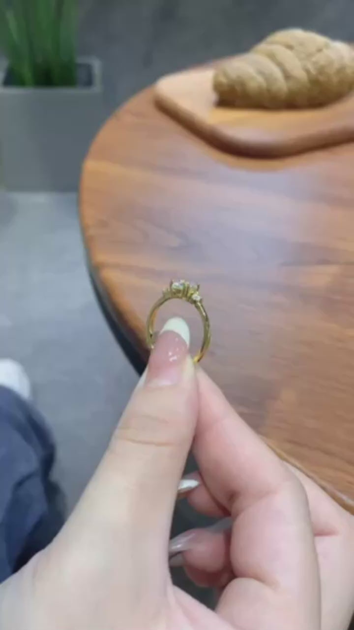 Three Stone Moissanite Ring for Women 925 Sterling Silver 18K Gold Double Round Solitaire Diamond Gemstone halo Wedding Jewelry