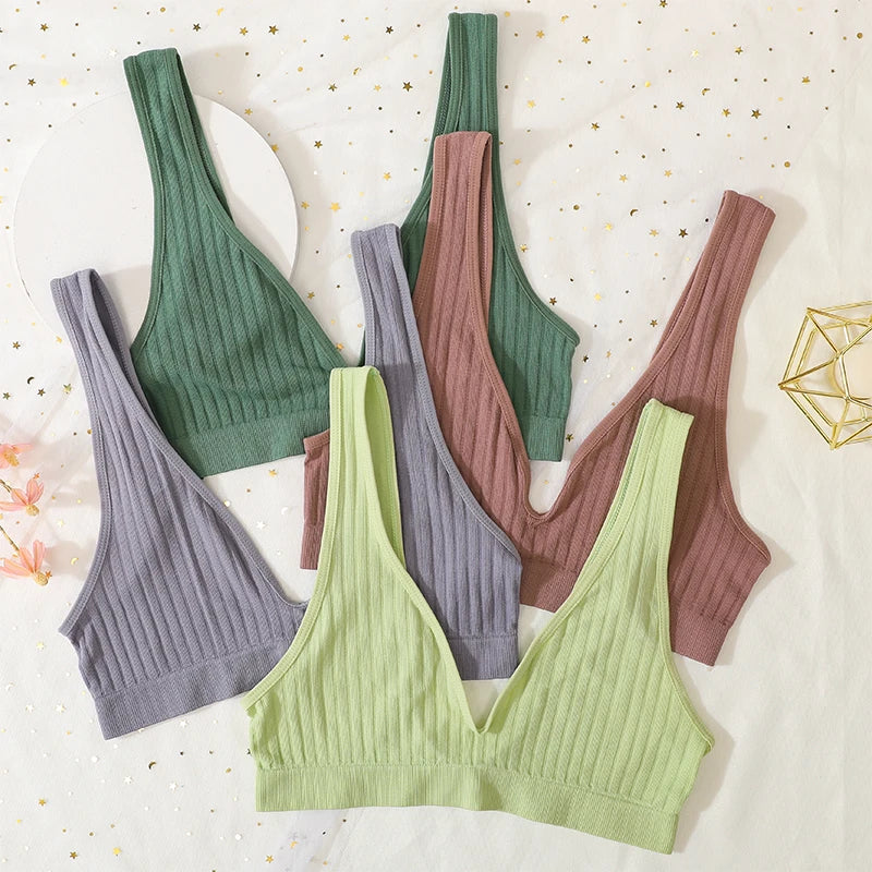 V-neck Push Up Bras For Women Seamless Bra Sexy Lingerie Female Low Back Ribbed Bralette Sleep Underwear Unlined Bra Crop Tops