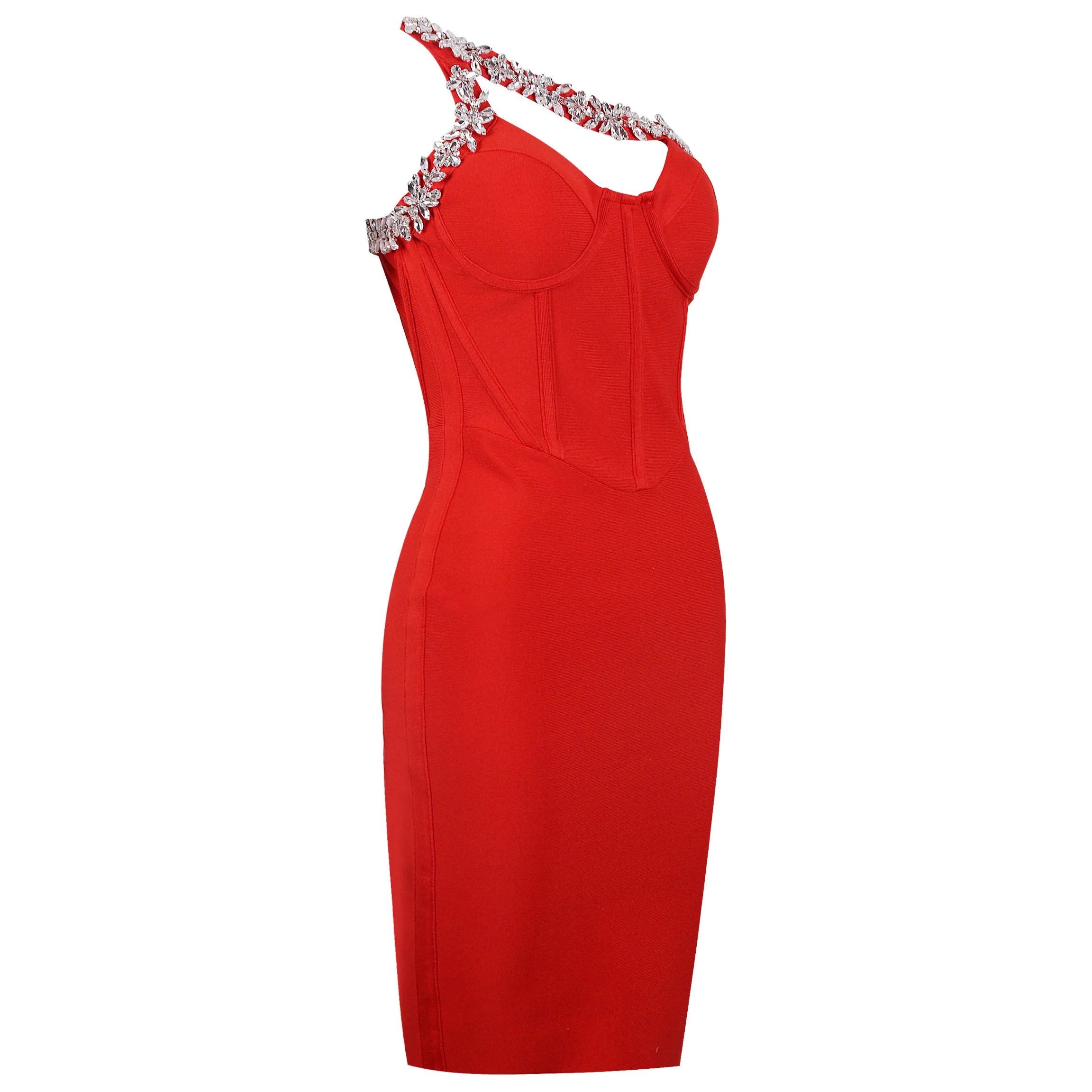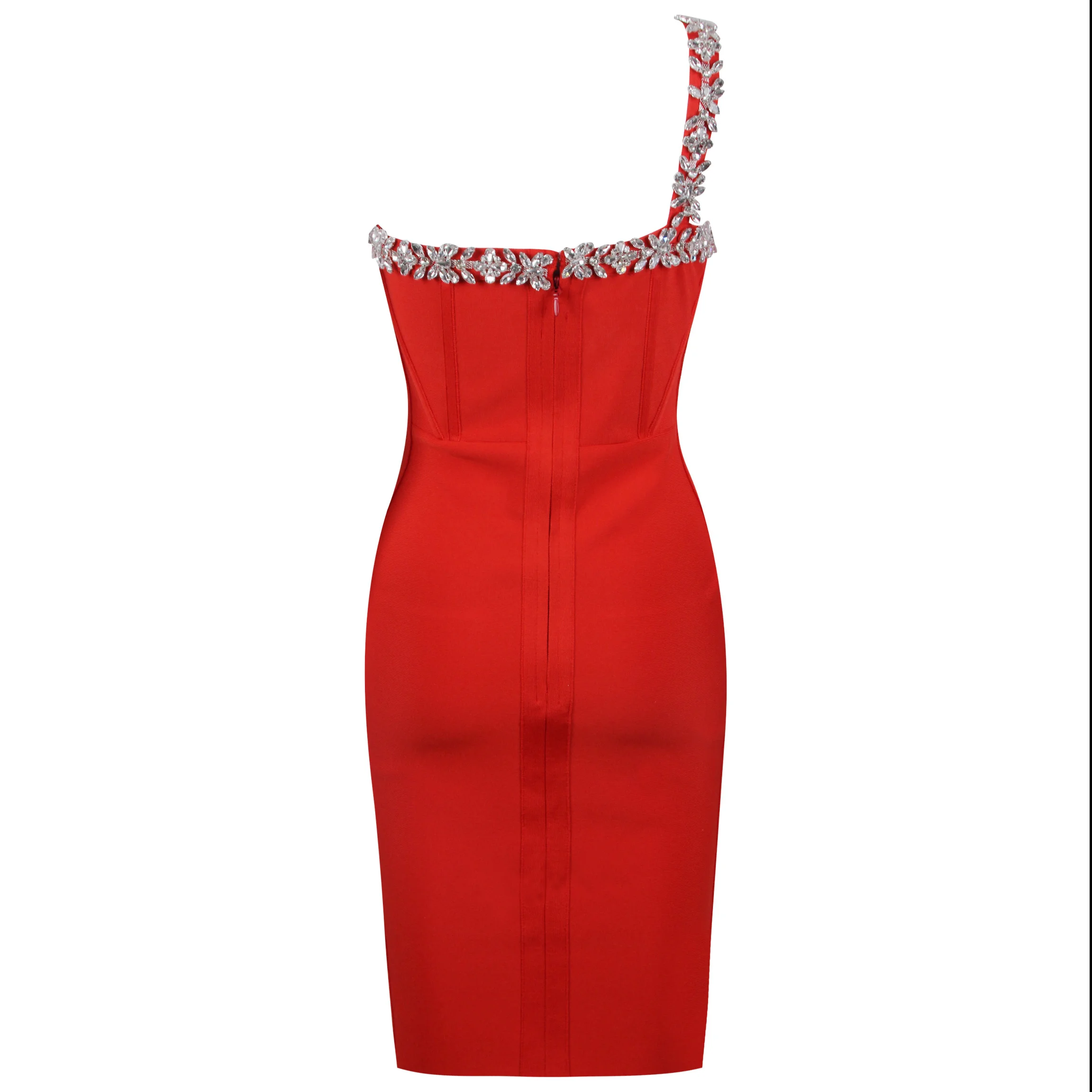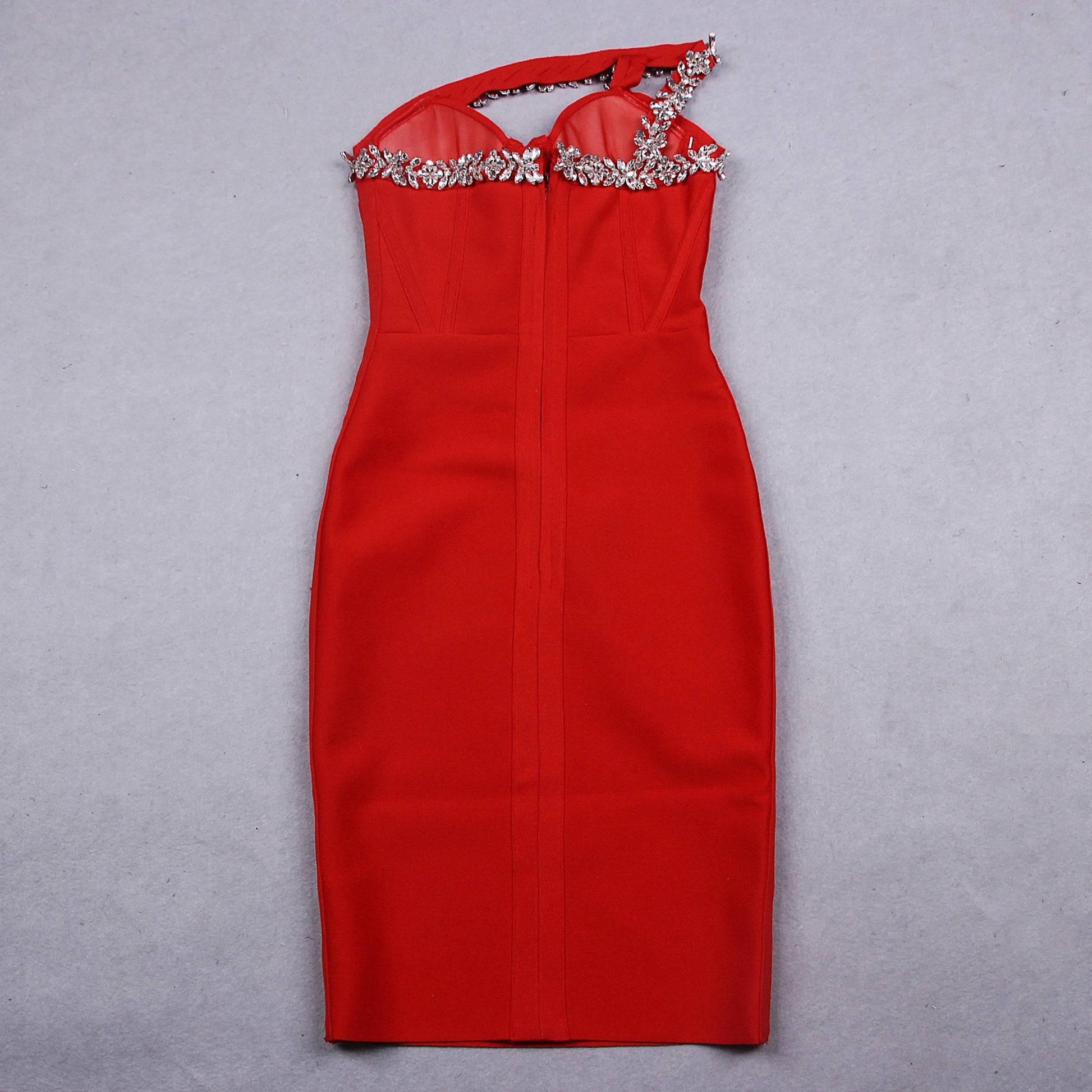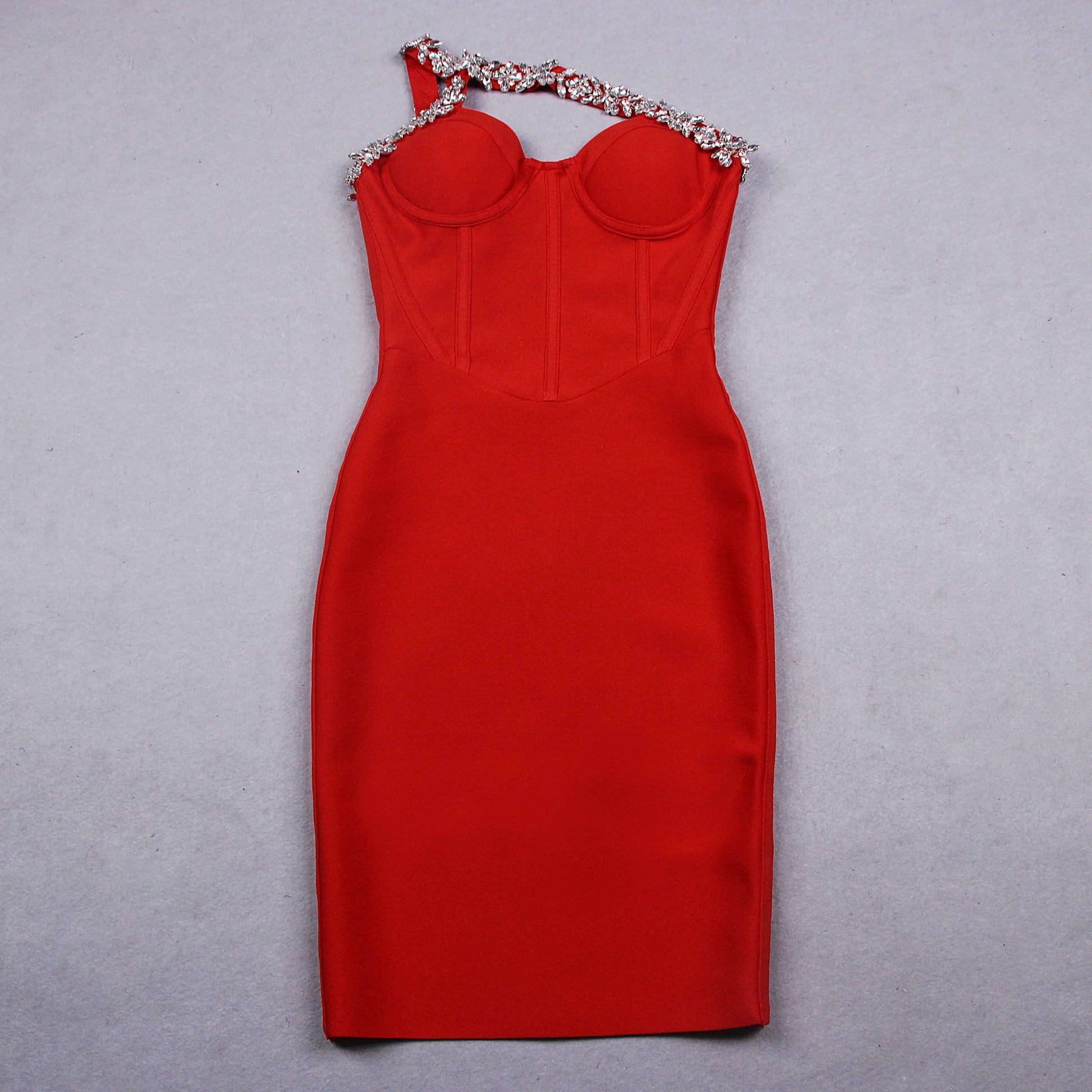 Vestidos French Europe Style Rhinestones Slash Neck Bandage Dress Simple Club Dresses