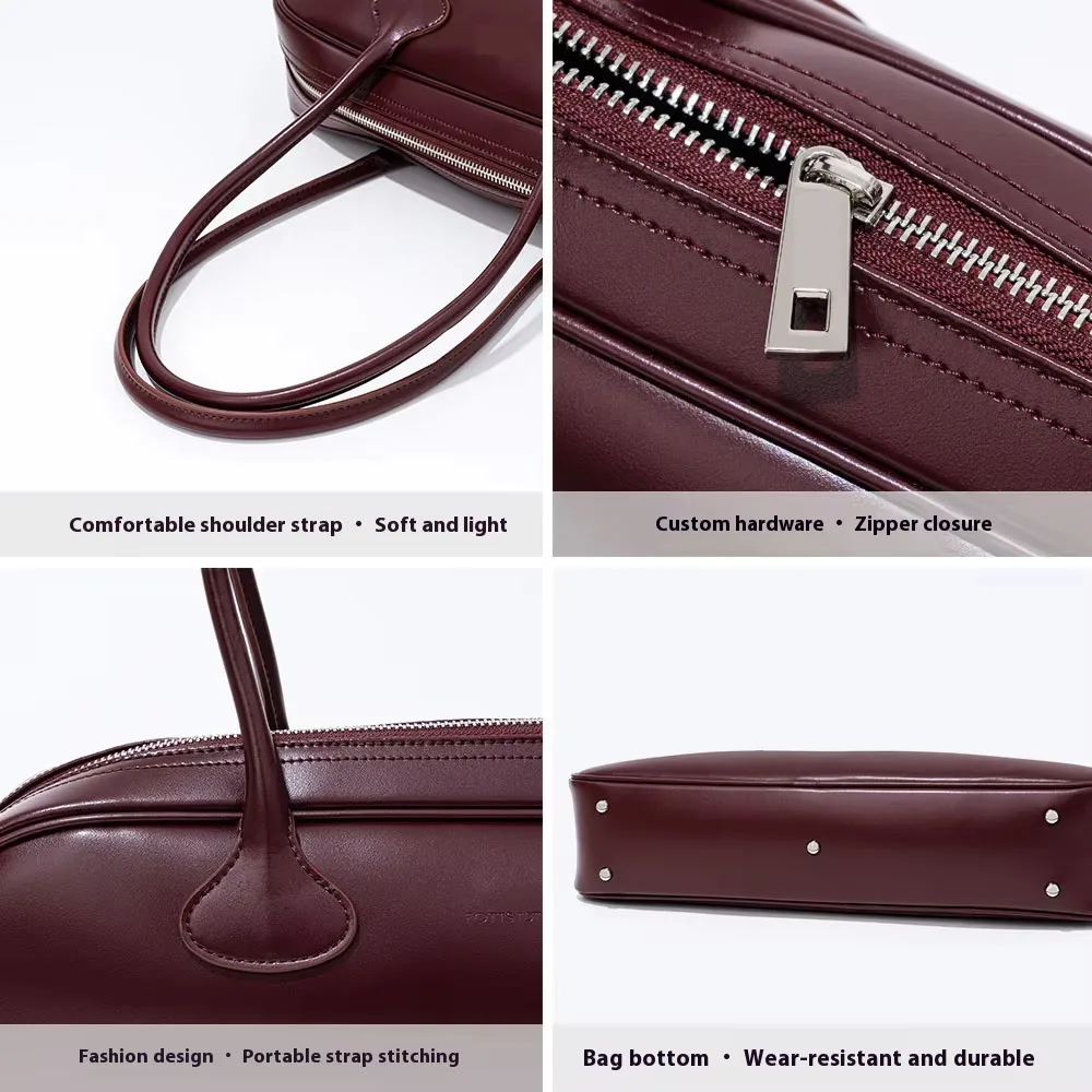 Vintage Style Ladies' Handbags Bowling Bag Genuine Leather Handbags Large Capacity Shoulder Bag Ladies' Genuine Leather Handbag