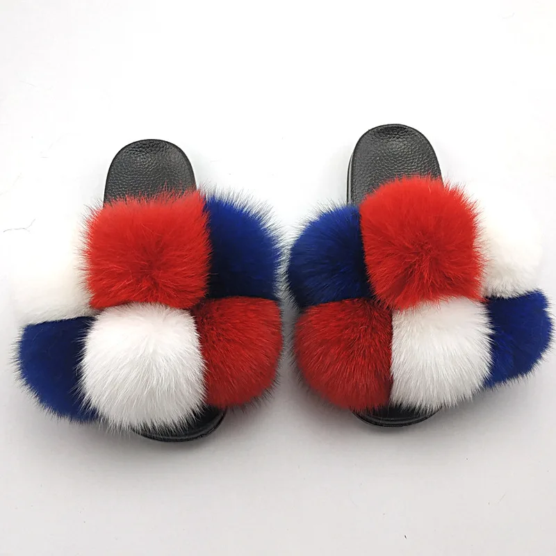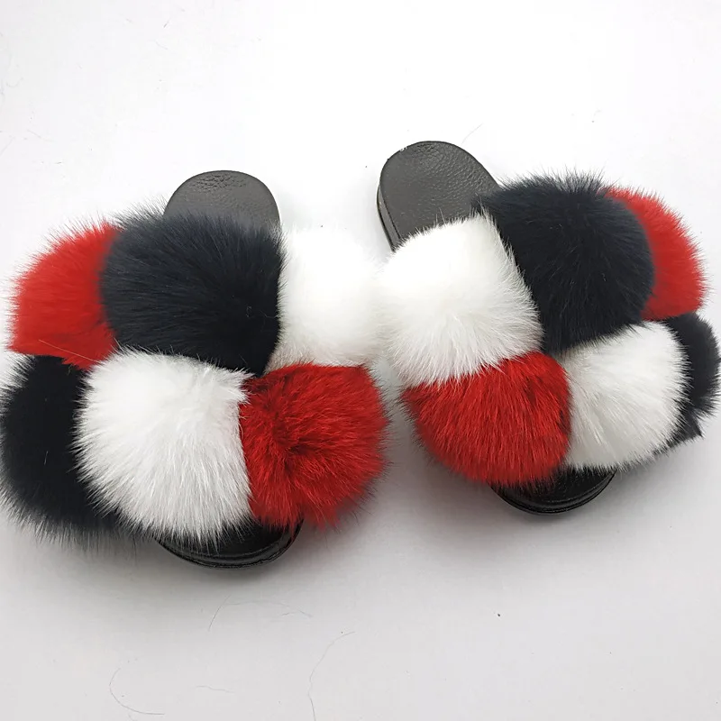 Woman Elegantes Adjustable Slides Fluffy Platform Sandal Rainbow Faux Fur Slippers