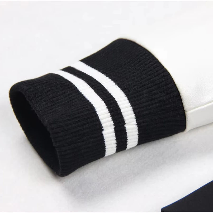 FASHINOWA Women Clothing Long Sleeve Leather Patchwork Double Breasted Women Baseball Coat Jacket