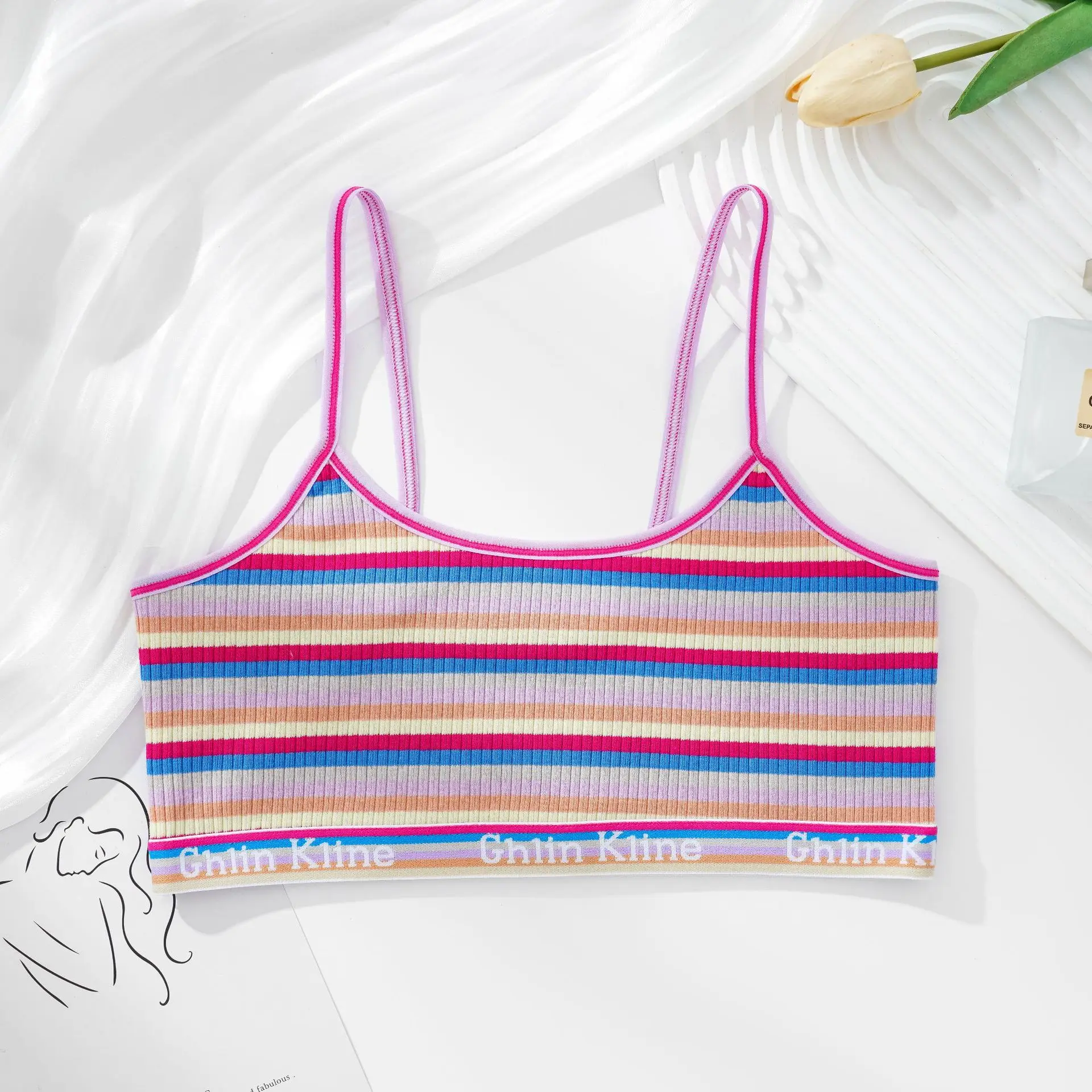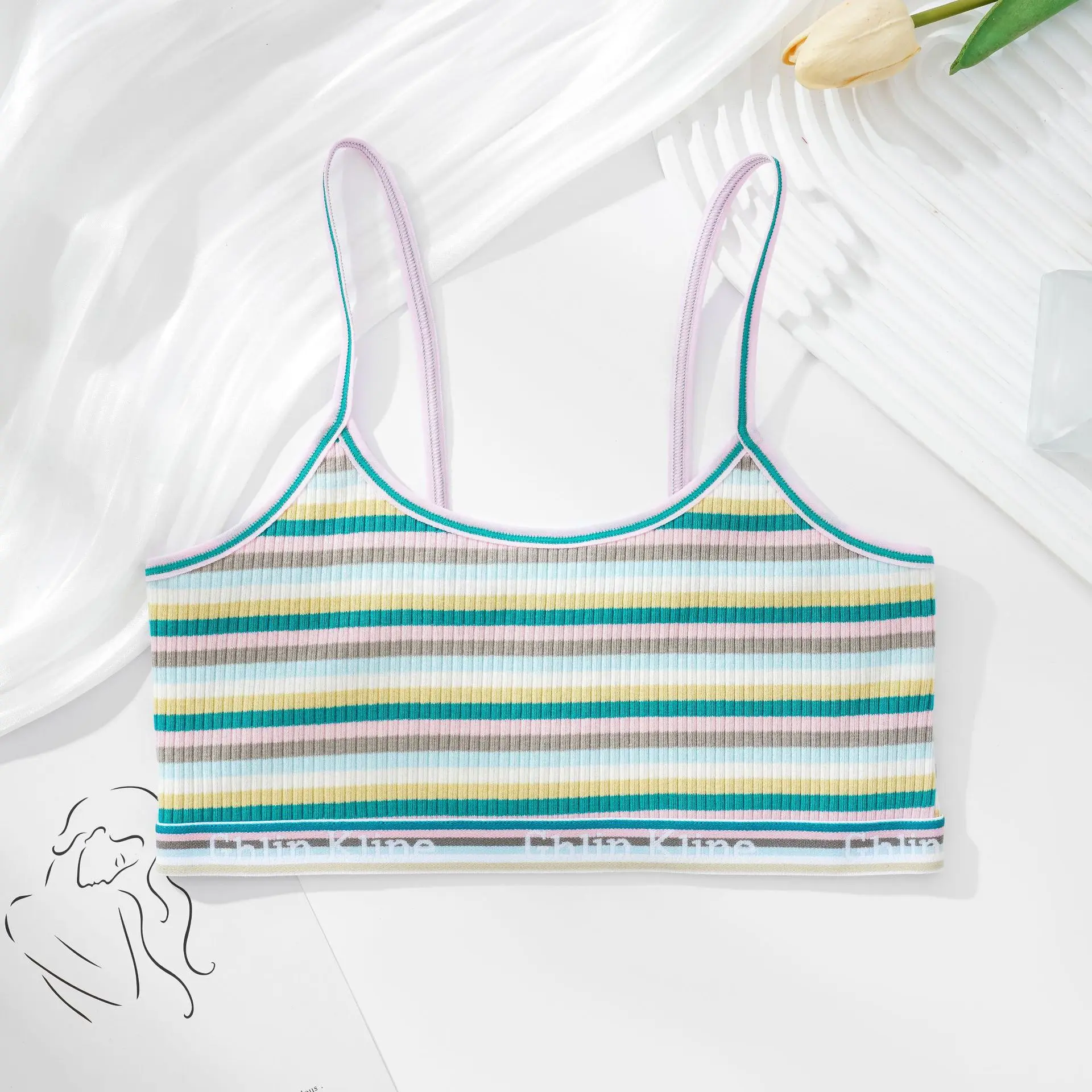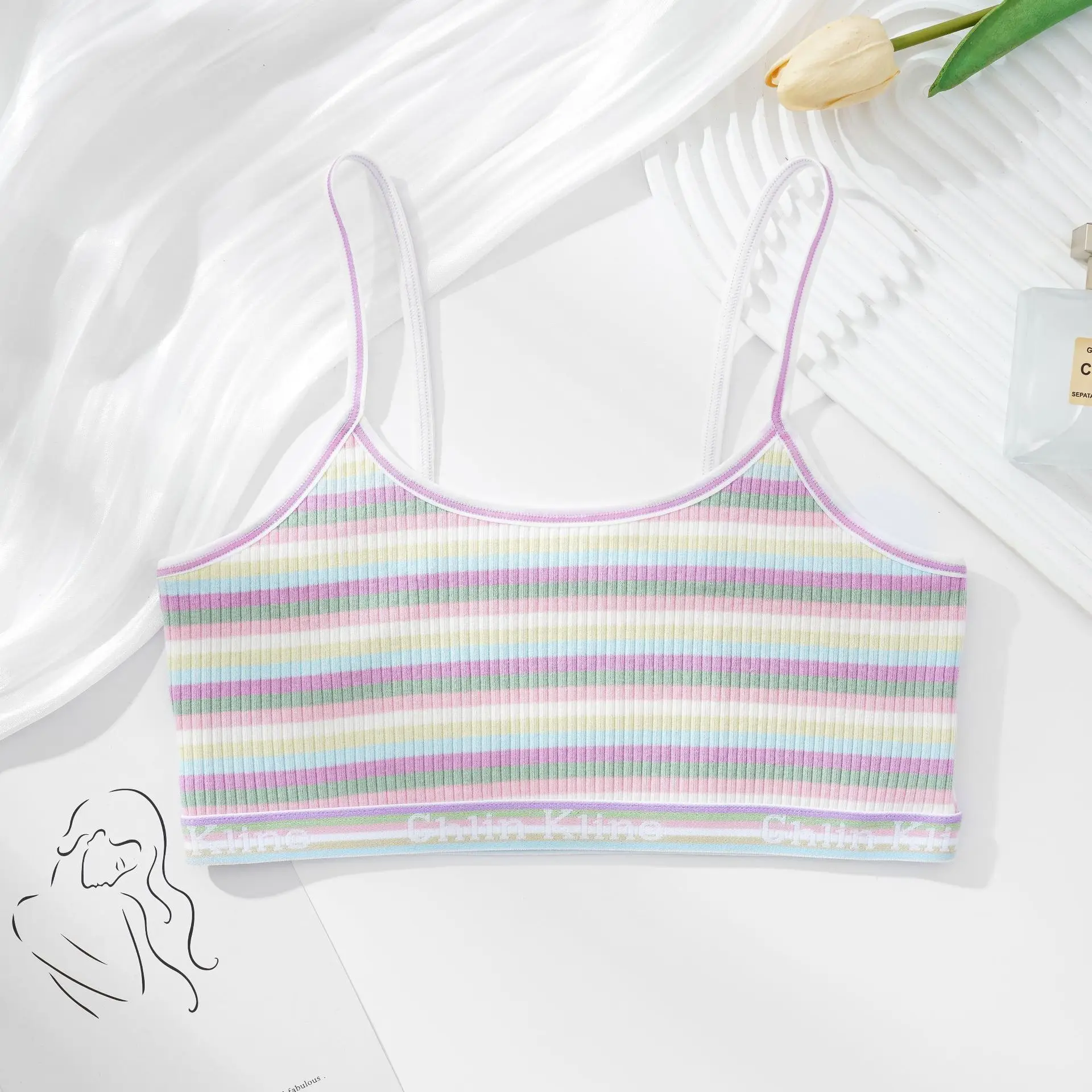 Girls Cotton Bras Female Thin Bralette Small Breast Girl Breathable Bra Colorful Striped Comfort Underwear No Pad Brasieres