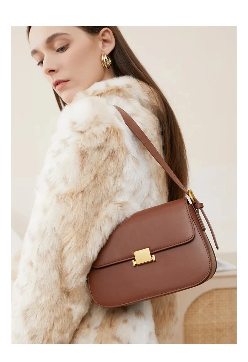 Women Cowhide Saddle Handbag Small Wedding Flap Underarm Shoulder Bag Retro Leather Square Box Messenger Tote for Lady Female