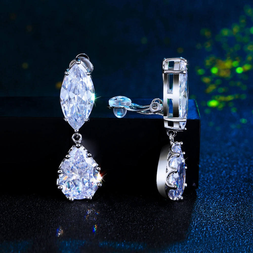 Women Luxury Non Pierced Jewellery Shiny White Cubic Zirconia Clip on Earrings for Girls Wedding Party Special Occasions Jewelry