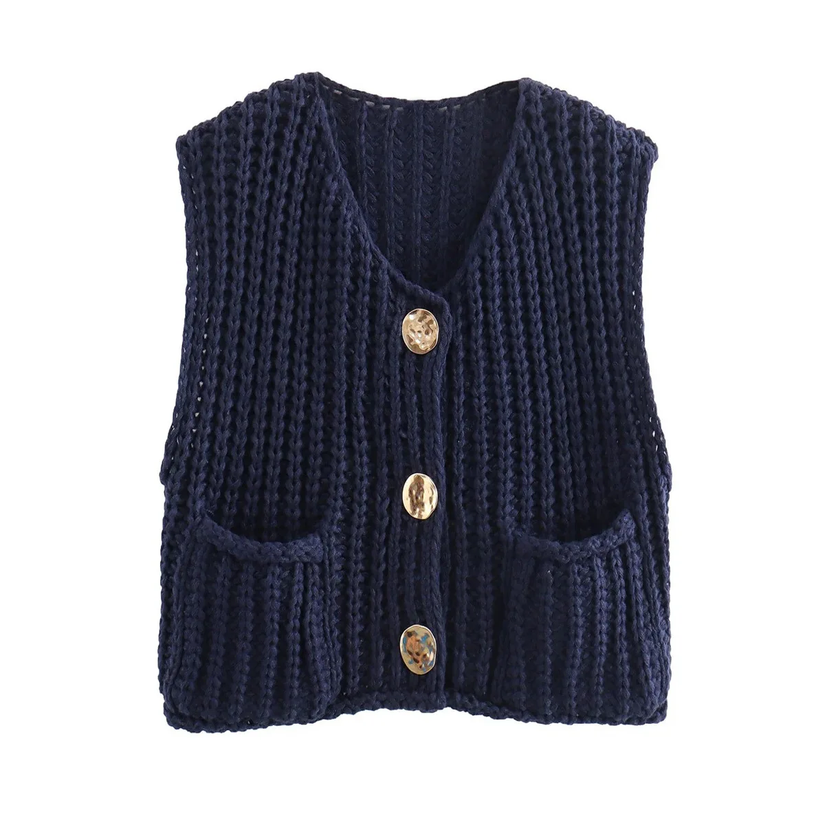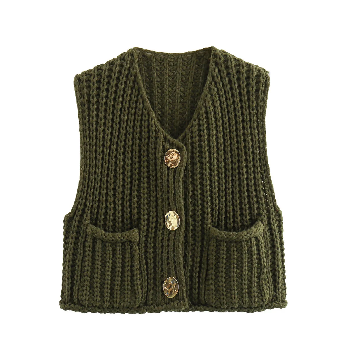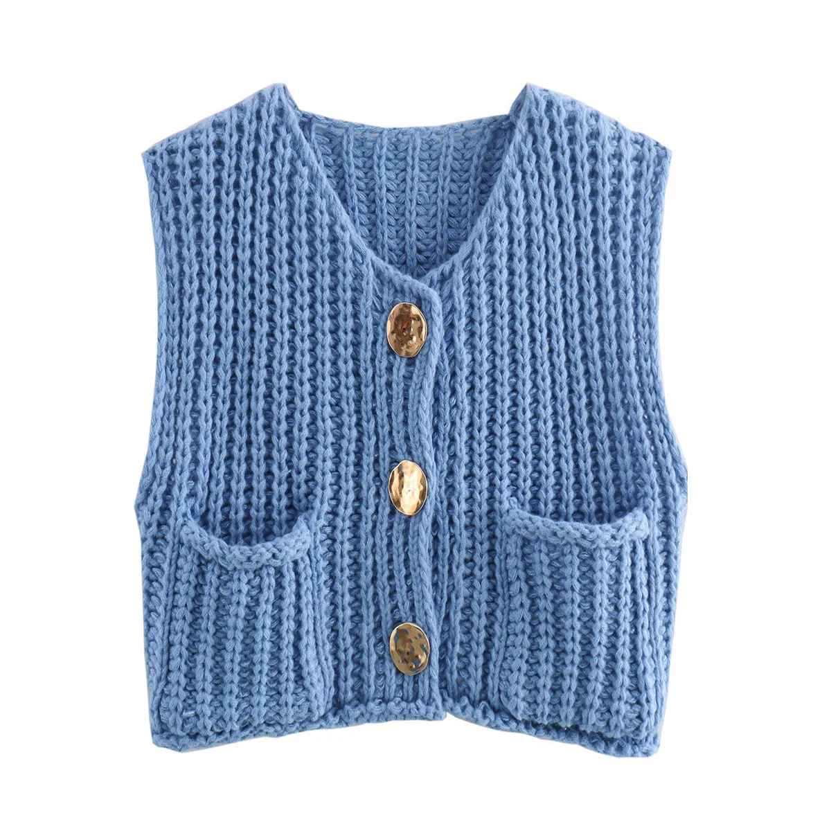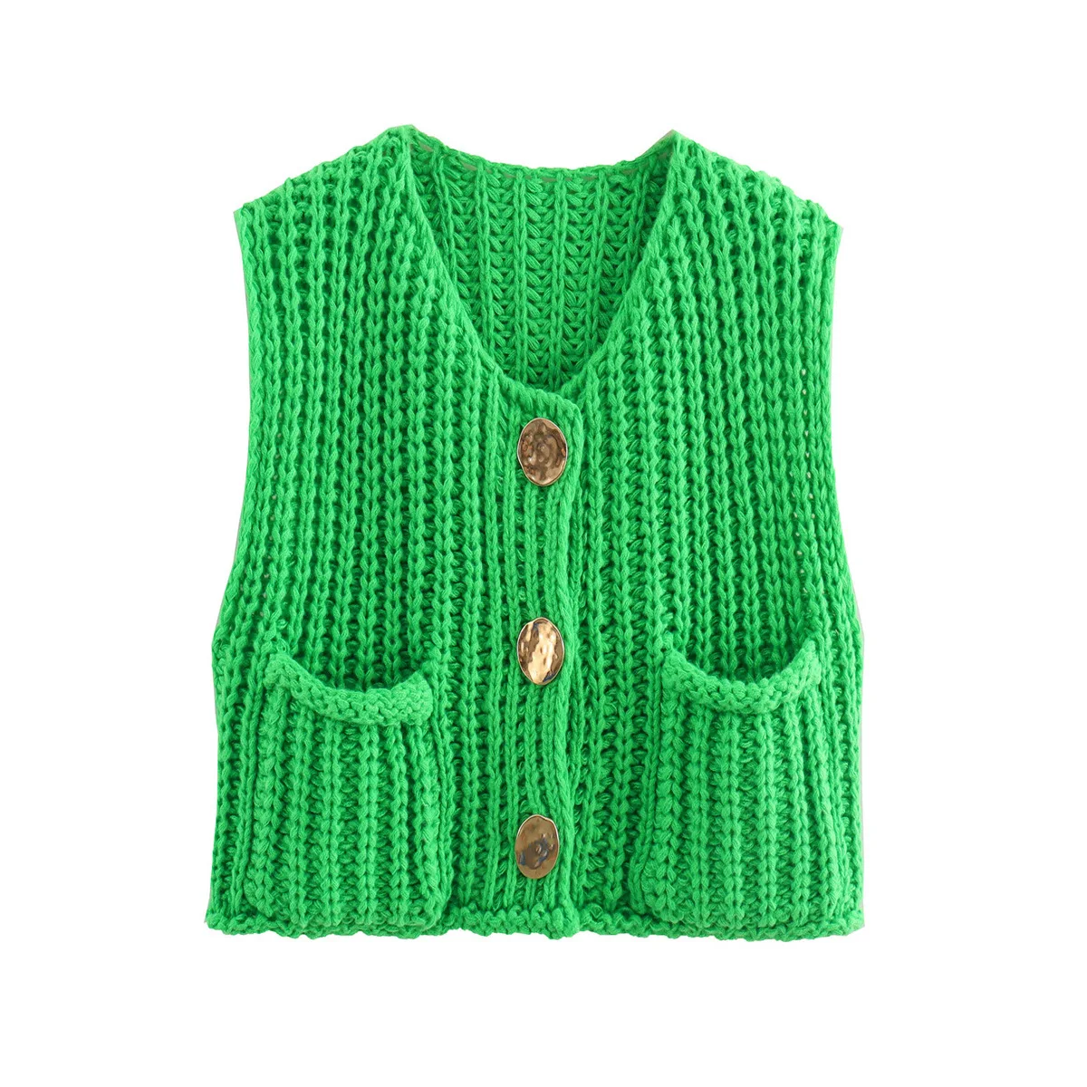 Women Solid Color Button Knit Vest V-neck Waistcoat Knitwear Sweater V-Neck Sleeveless Tops Spring Autumn Fashion Casual Sweater