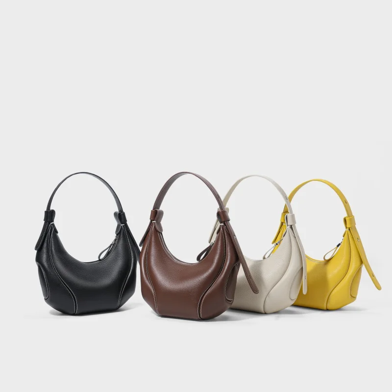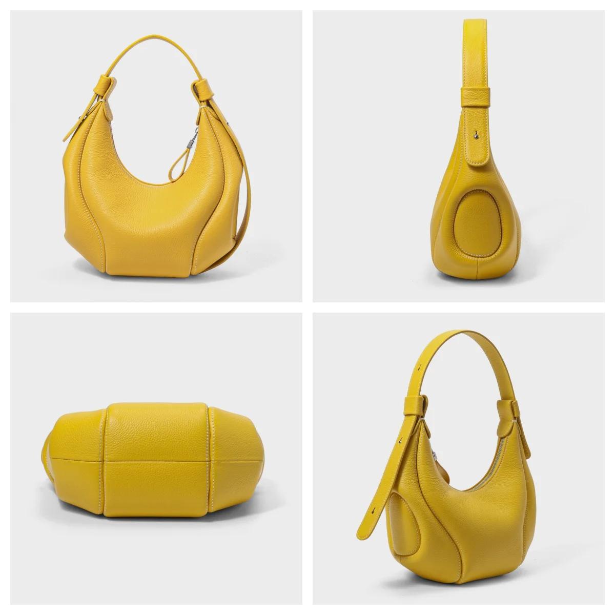 Women's Customized Half-Moon Underarm Shoulder Handbag Fashionable Genuine Cowhide Leather Bag Adjustable Strap Full-Grain
