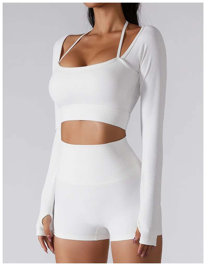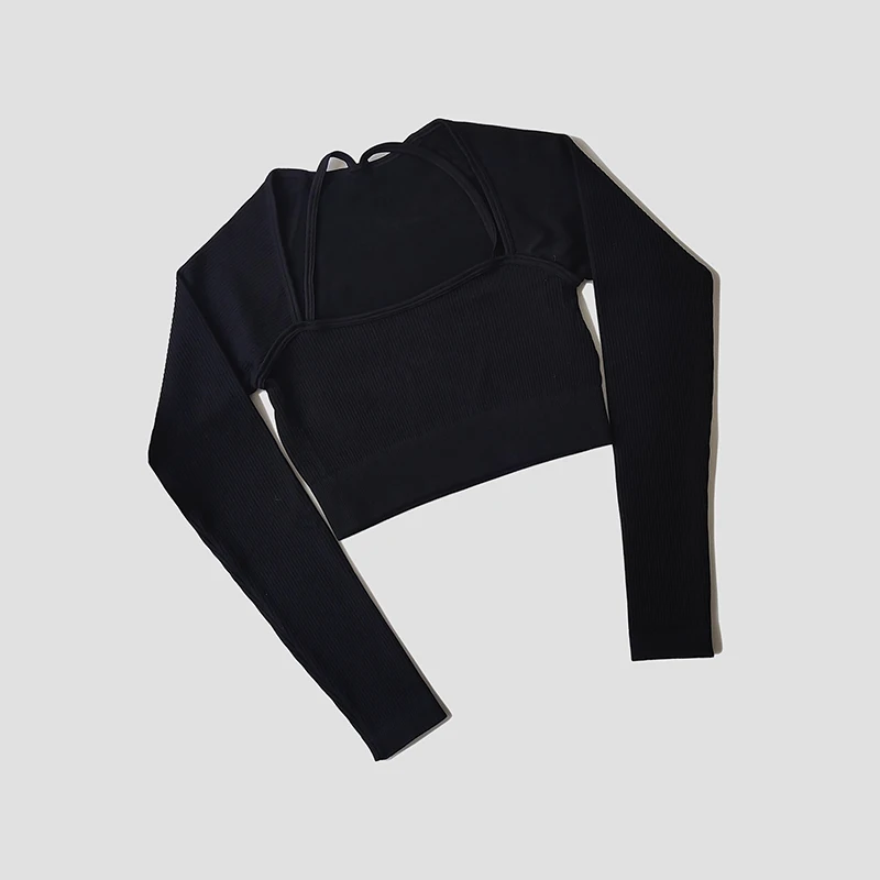 Women's Shirt Seamless Crop Top Fitness Shirts Long Sleeve Sports Top Female Yoga Tops Activewear With Shoulder Strap